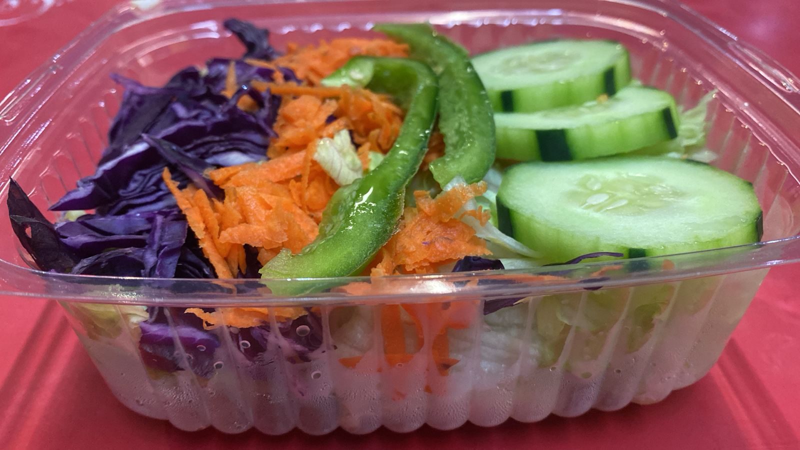 Ensalada con combinación de verduras de temporada y aderezo de la casa.