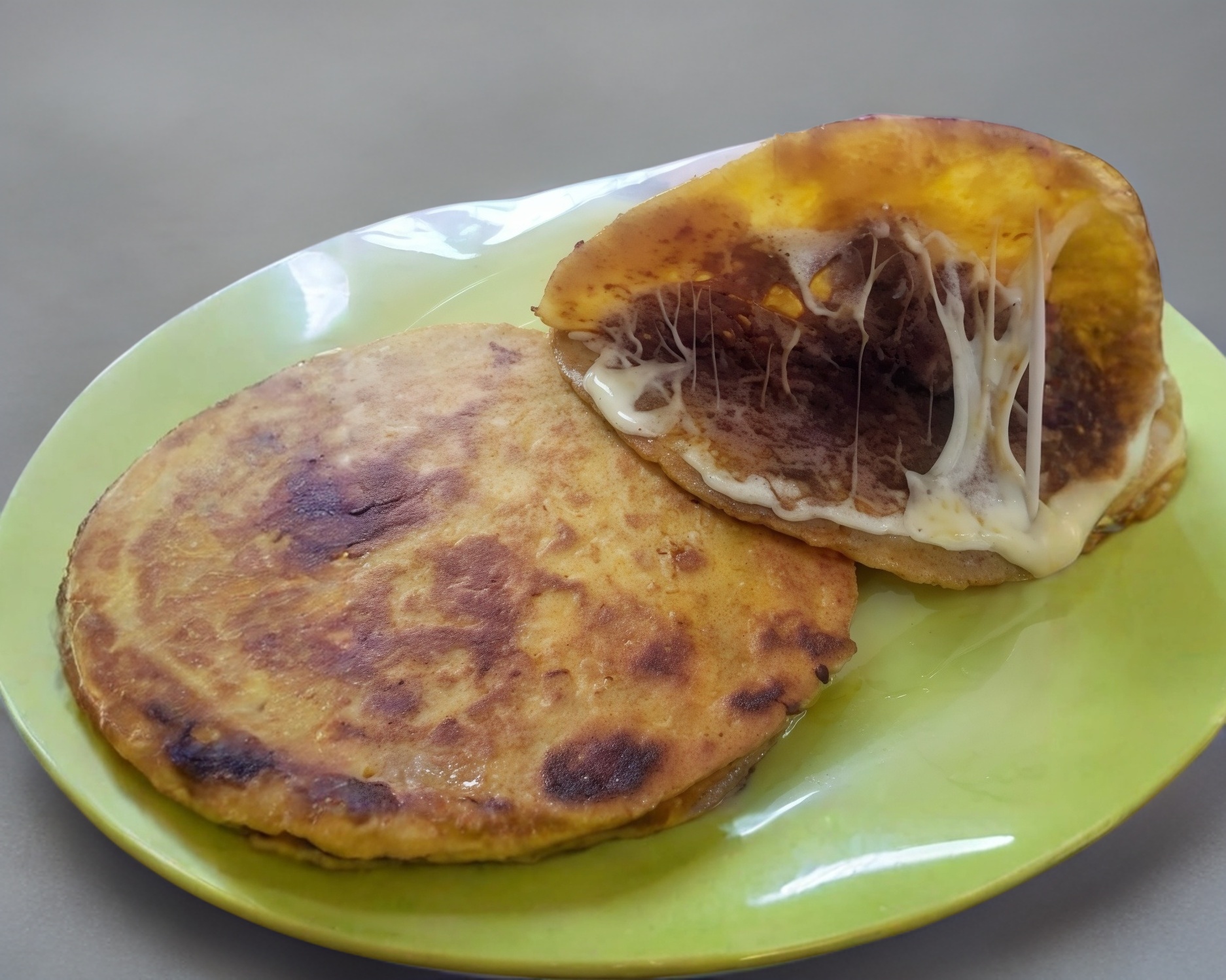 Deliciosa Quesabirria doble de maiz con birria de res, consomé, cebolla, cilantro y salsa