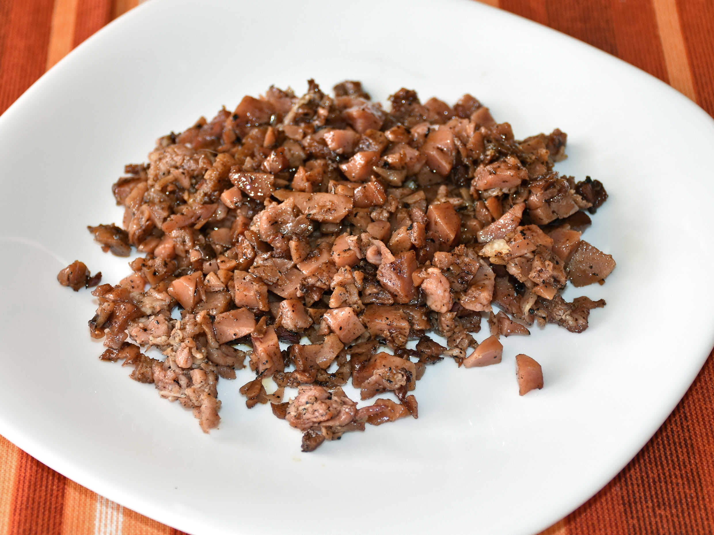 Tocino picado en cuadritos.