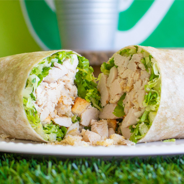 150 gr de pollo, lechuga romana, croutons y aderezo ranch en tortilla integral.