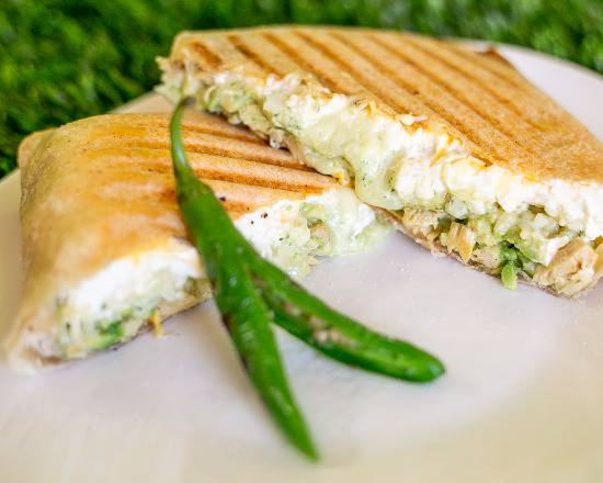 Tortilla integral envuelta en queso cheddar, queso mozzarella, queso crema, queso americano, aguacate y proteina a elegir (pollo, pepperoni o boneless).