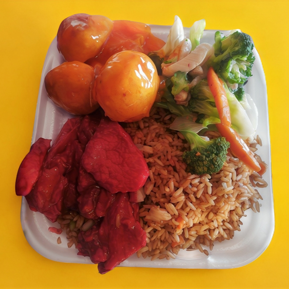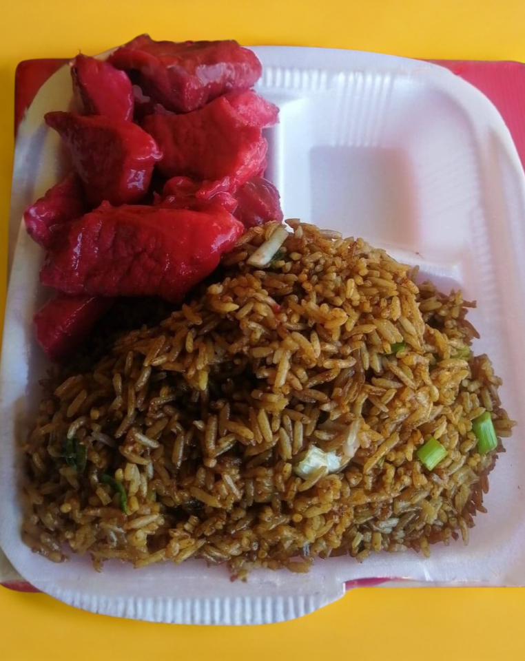 Arroz cantones y 2 guisos a elegir, tenedores se venden por separado.