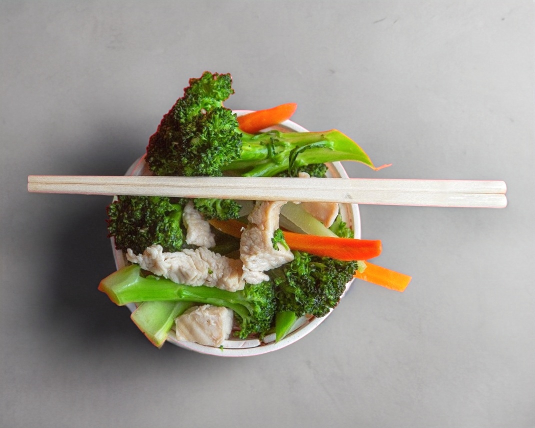 Arroz más 1 porción de brócoli con pollo.