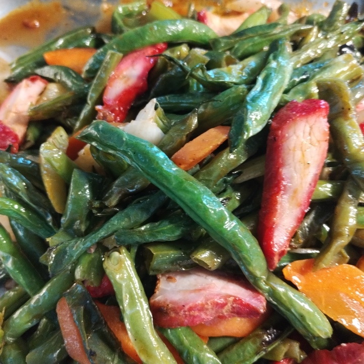 Ejotes con carne puerco con salsa ostión ( Se sirve en un vaso de medio litro o se puede agregar a los guisos) Recomendado para infantes