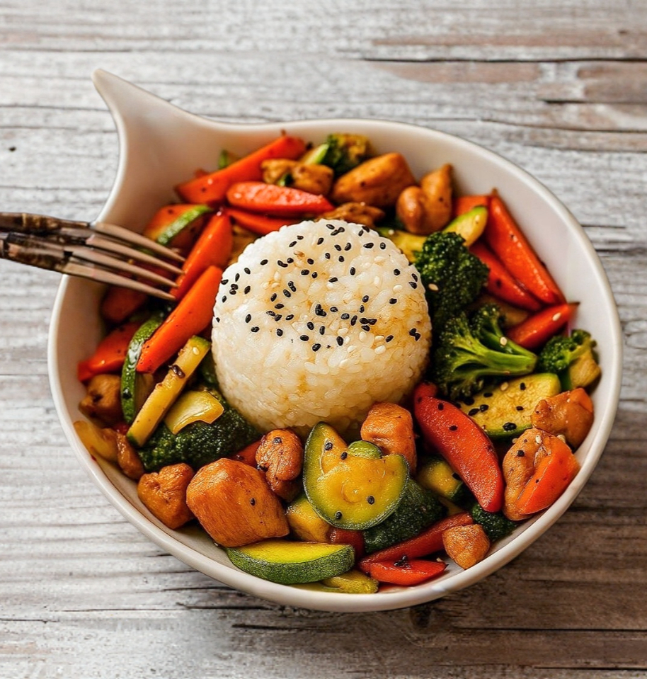 ¿Necesitas un break sabroso? Este platillo lo tiene todo: Proteína a la plancha (elige pollo, res o camarón) sobre arroz al vapor, con mix de vegetales salteados (brócoli, zanahoria, calabaza y cebolla) y nuestra salsa teriyaki casera: dulce, intensa y deliciosa. Incluye salsa soya y chipotle para que le pongas tu flow final 🎶