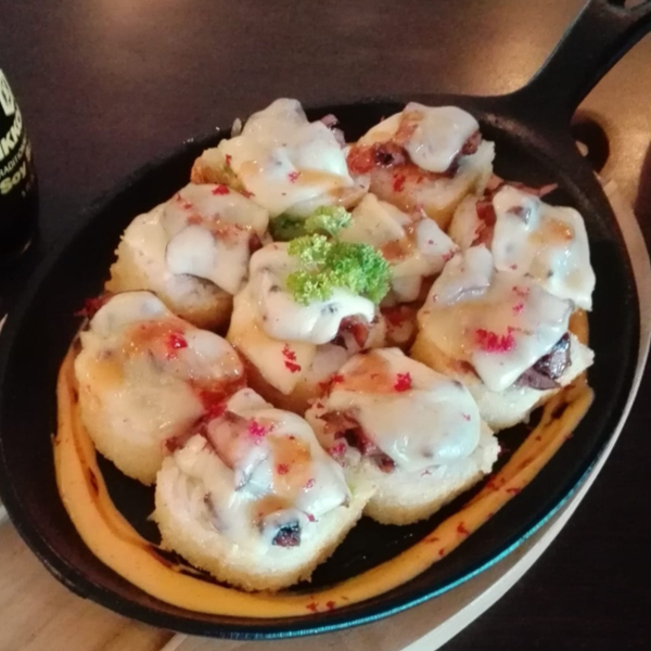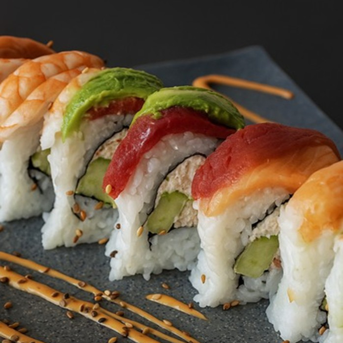 Lo hacemos con pollo, queso crema y pepino, se cubre de aguacate. Lo coronamos con tampico y camarón, bañado en búfalo incluye soya y chipotle.