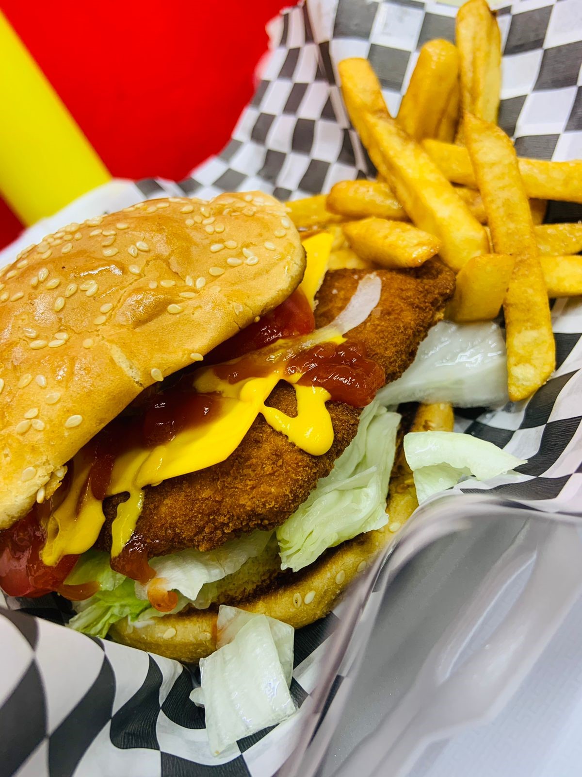 1/2 De alitas, 300 gr de papas a la francesa, hamburguesa clásica.