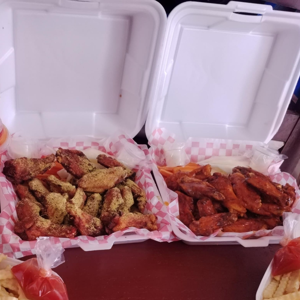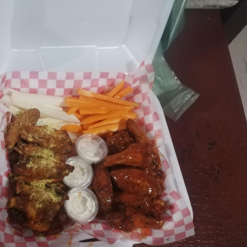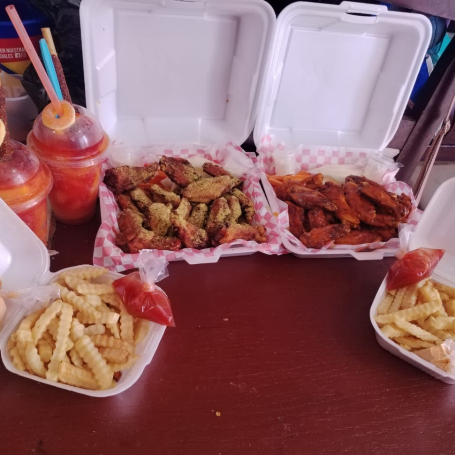 Alitas 2 kilos,papas 500g y 2 mangonadas