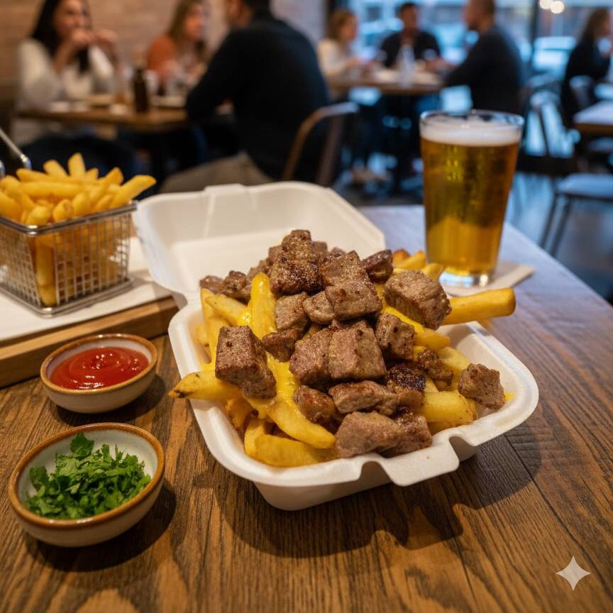 PAPAS FRITAS (250G) CON 100G DE ARRACHERA BAÑADAS EN QUESO