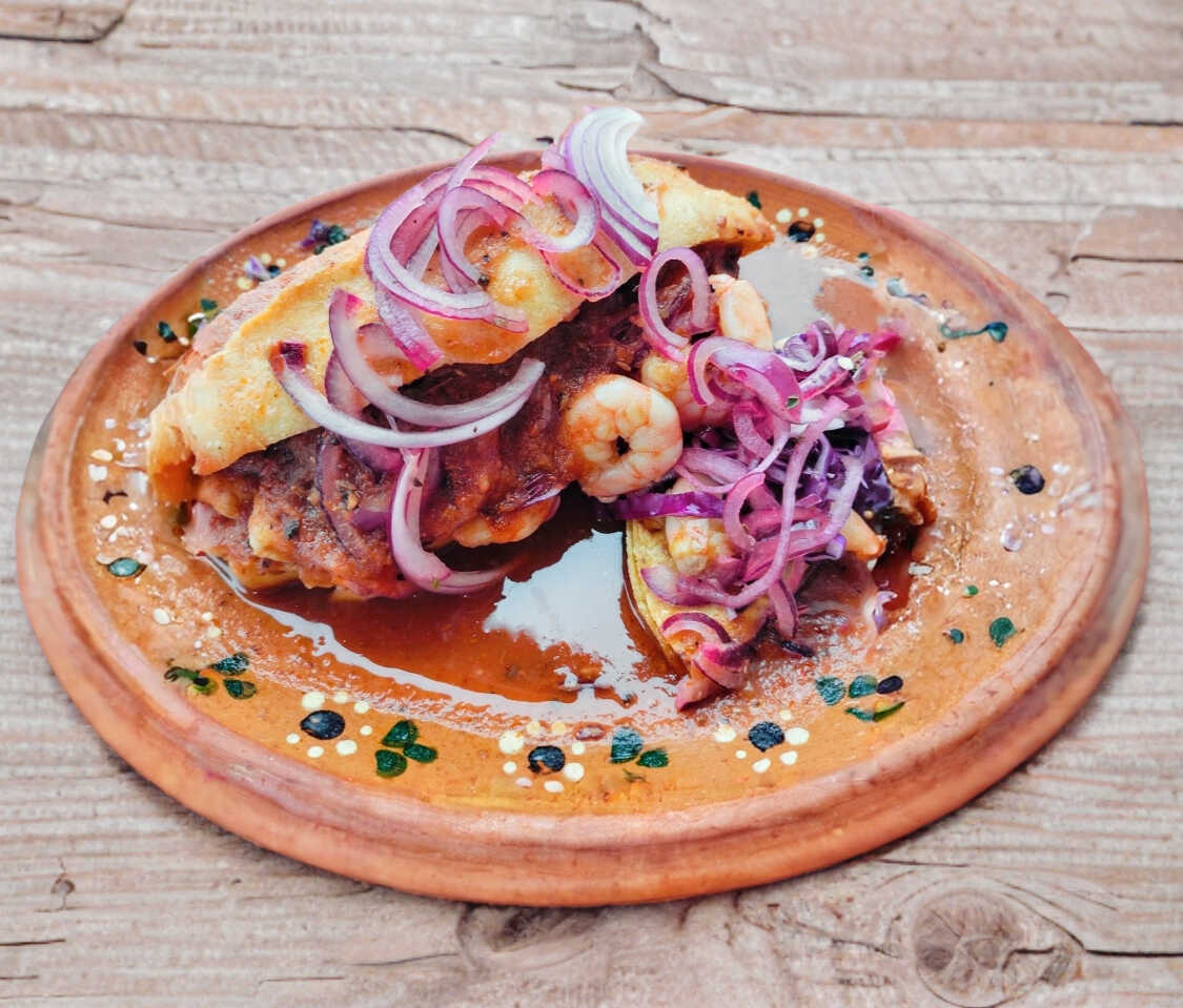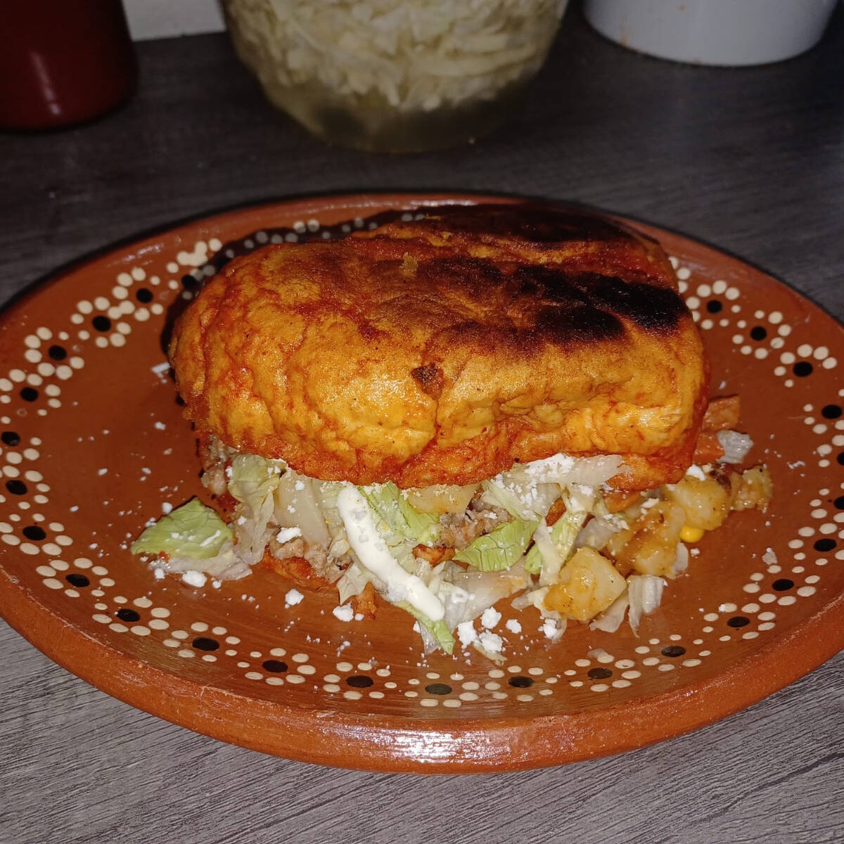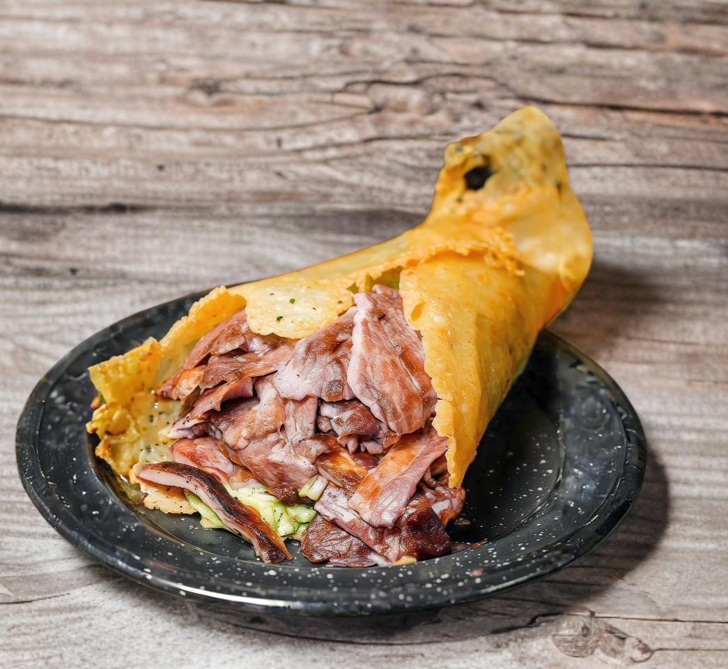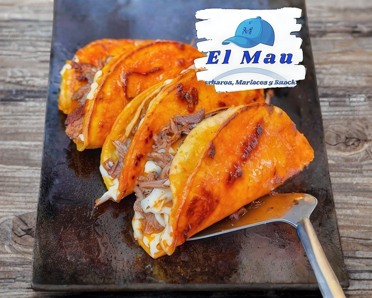 TORTILLA DE MAIZ RELLENO DE BARBACOA DORADO A LA PLANCHA