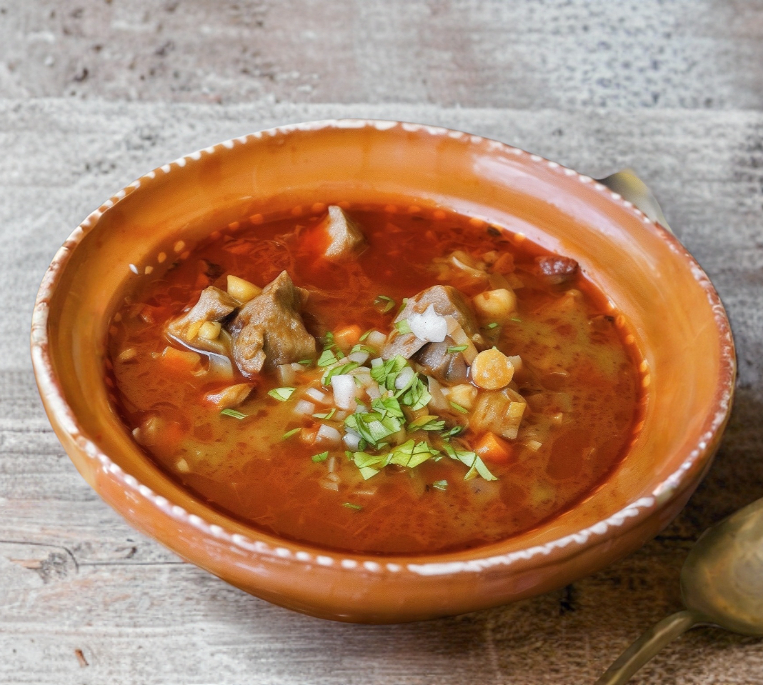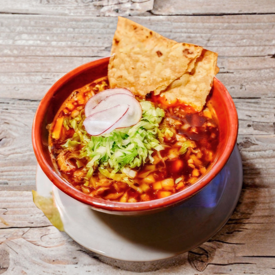 Pozole con Cabeza y Hueso (1Lt) con Lechuga, Cebolla, Rabanos, Salsa de la casa y Limon