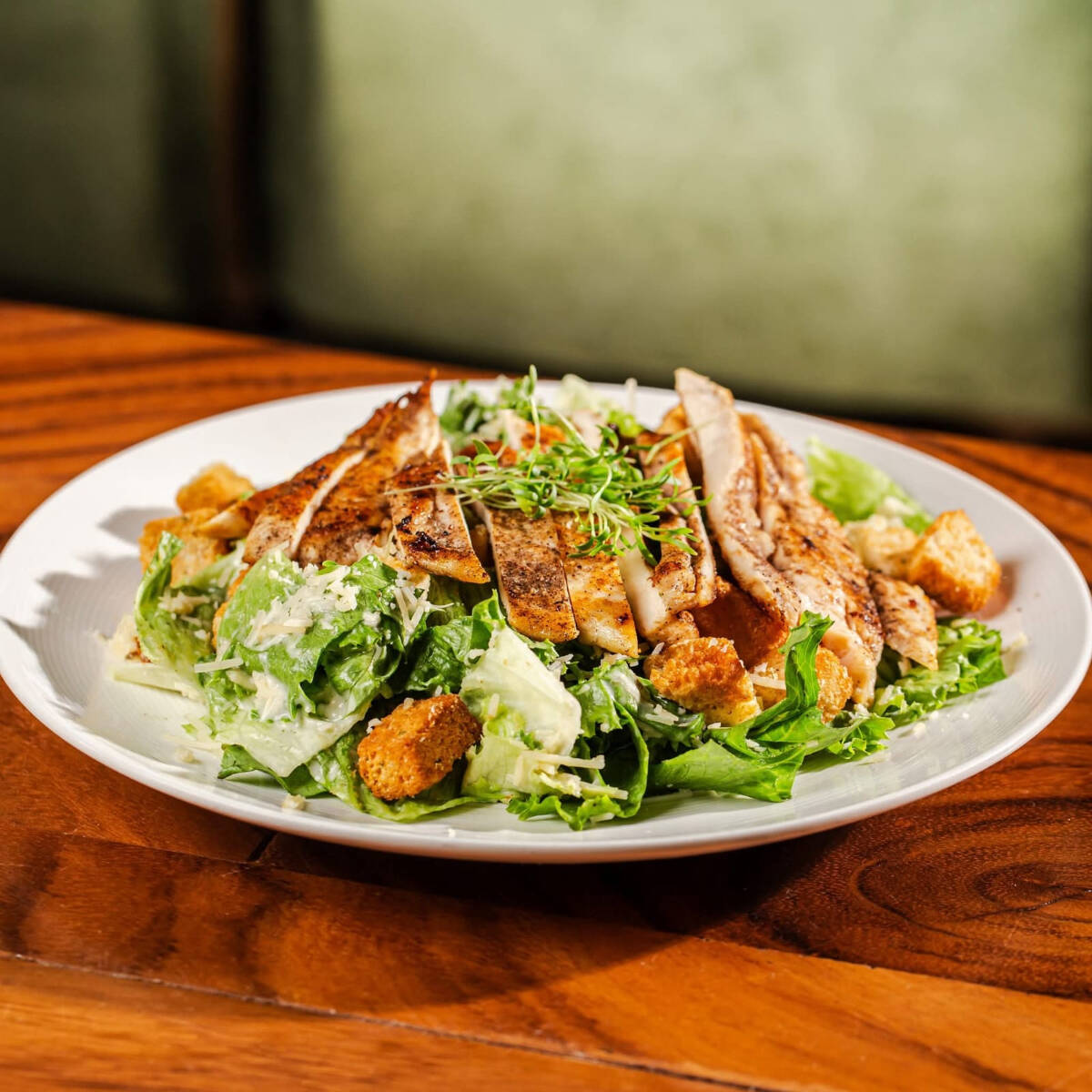 MEZCLA DE LECHUGAS ,PECHUGA DE POLLO A LA PLANCHA Y ADEREZO DE LA CASA