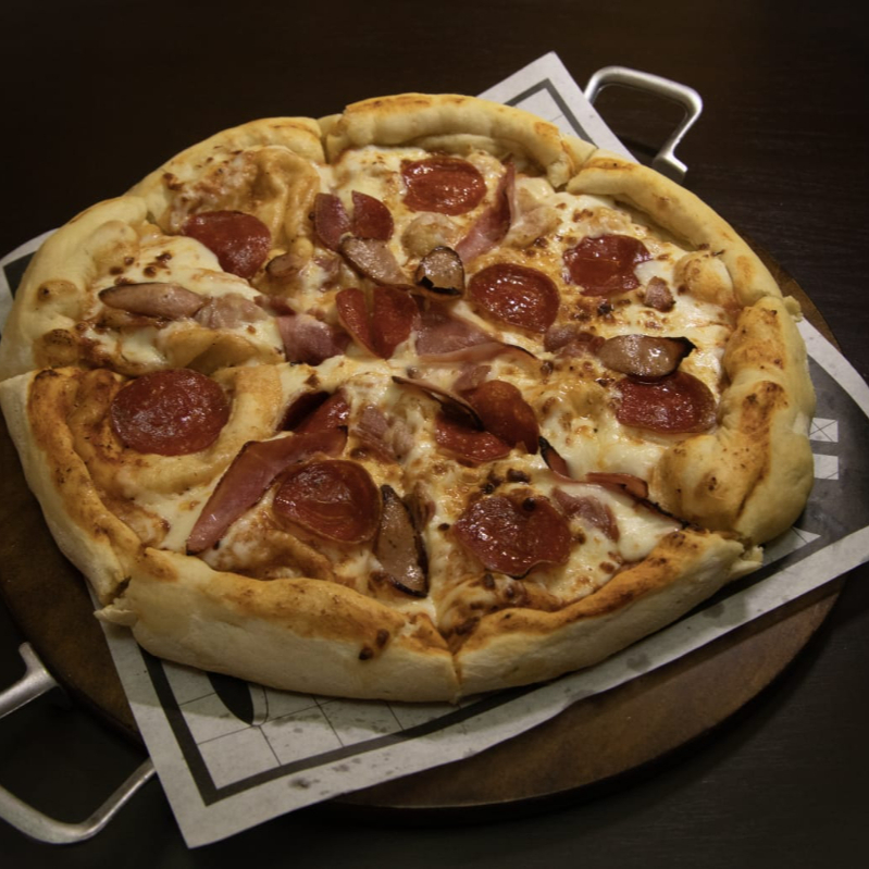 PERFECTA MEZCLA DE TOCINO,JAMON ,PEPPERONI SALCHICHA Y QUESO MOZZARELA