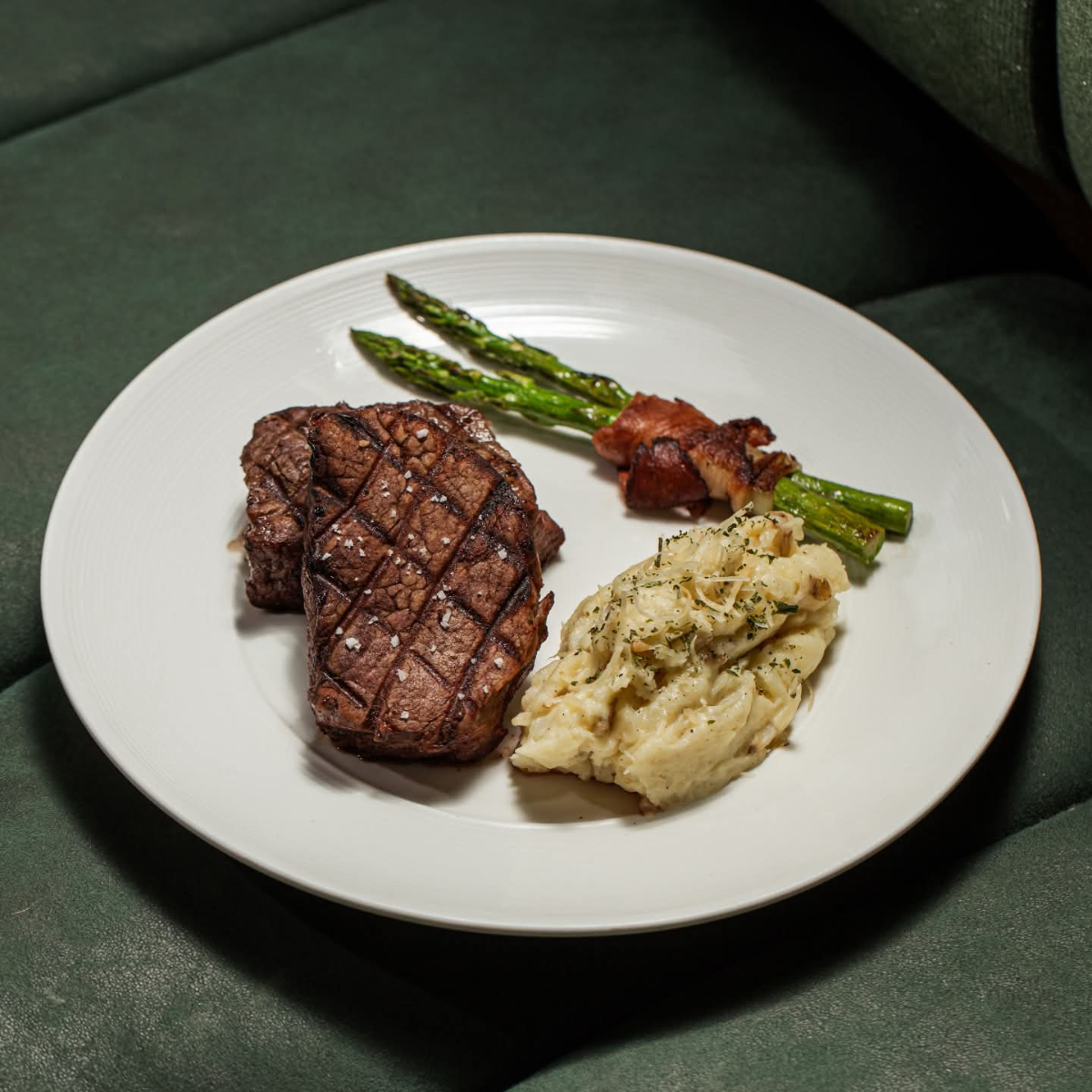 FILETE DE RES JUGOSO CON PURE DE PAPA ESPARRAGOS