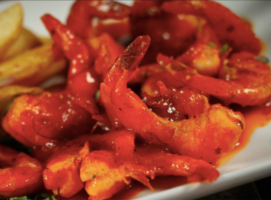 Camarones cocinados en salsa diablo, receta de camarón chelero!! Acompañados de arroz y ensalada. Un clásico convertido en milenial!!! 250 gramos.