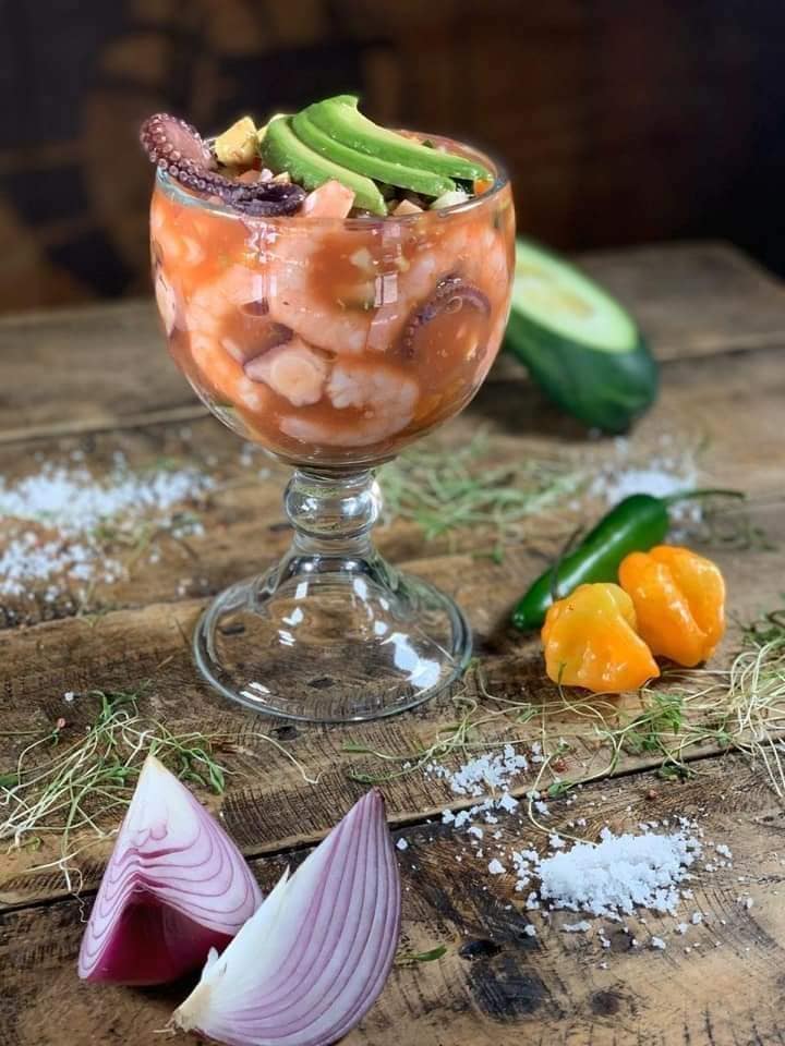 800 gr. de puro placer...Camarón cocido, pulpo, atún y ceviche de pescado con la receta de la casa.