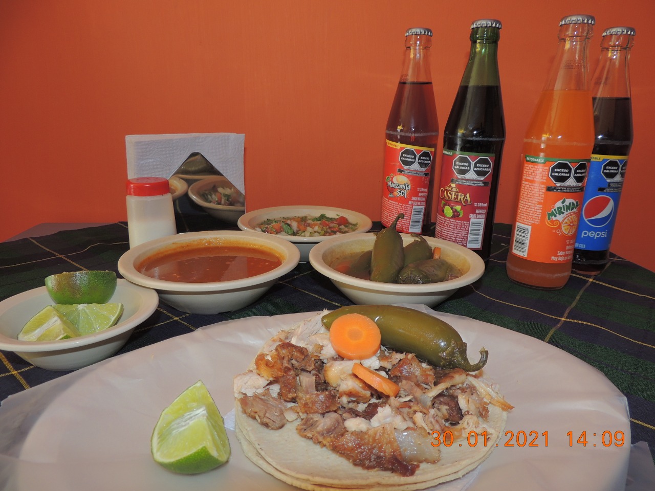 Incluye tortillas, chiles y salsa.