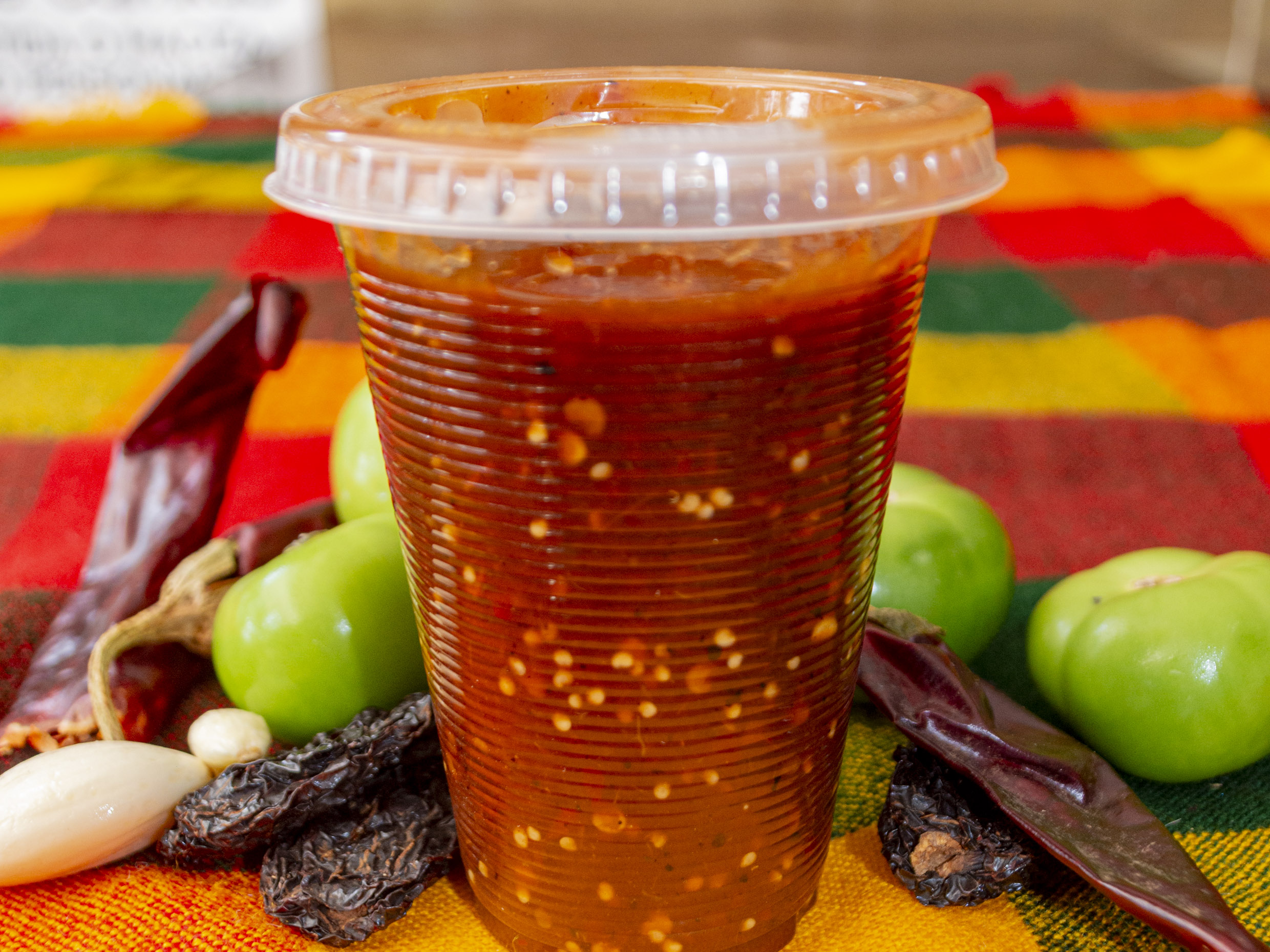 1 Salsa a elegir y chiles en vinagre. No incluye tortillas.