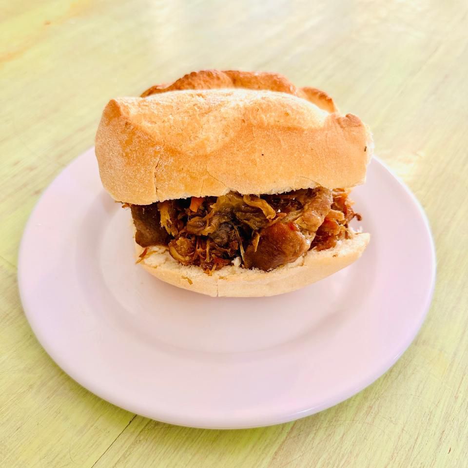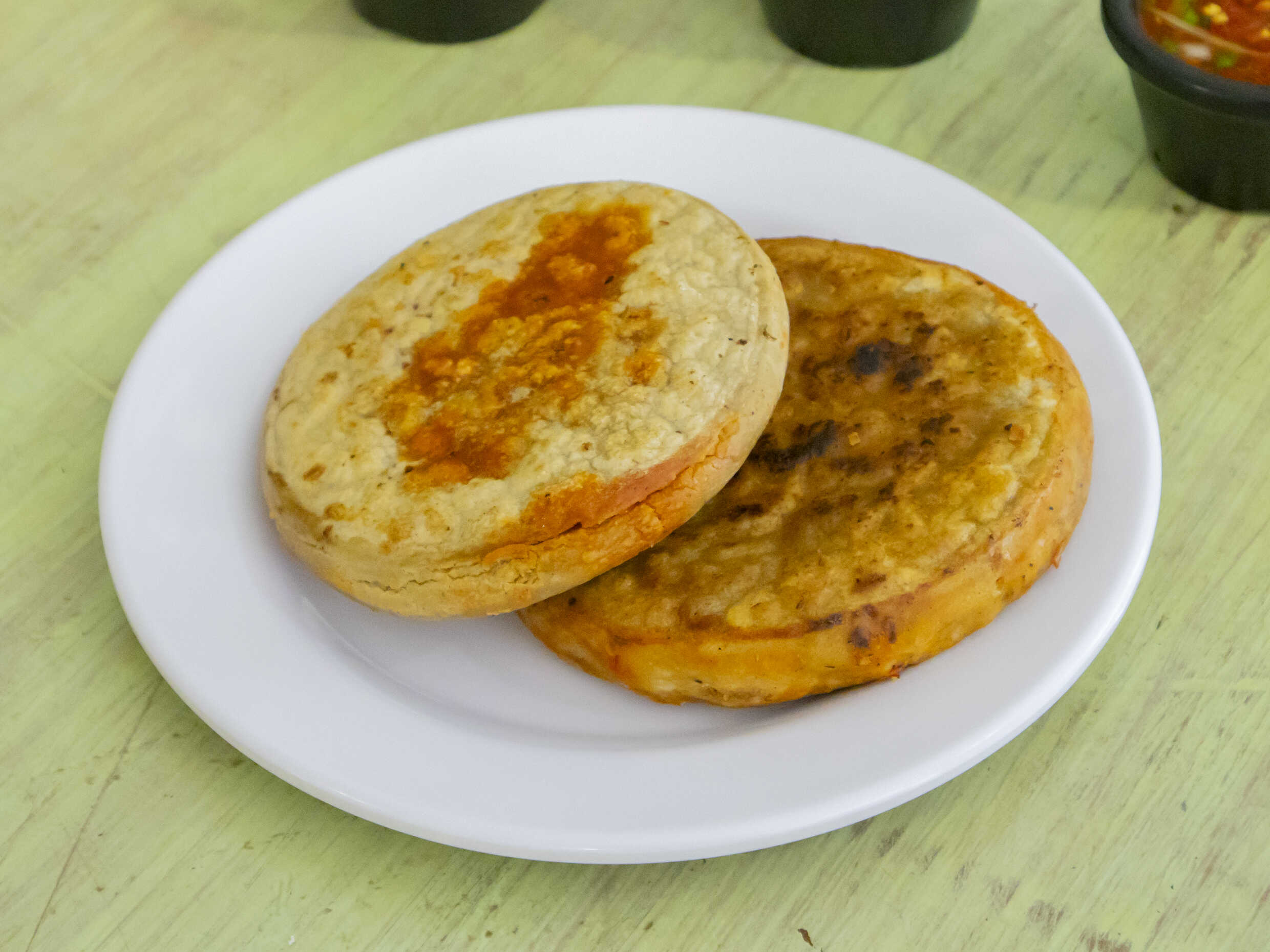 Rellena de boronas o rellena de cacahuate, queso y salsa asada con repollo.