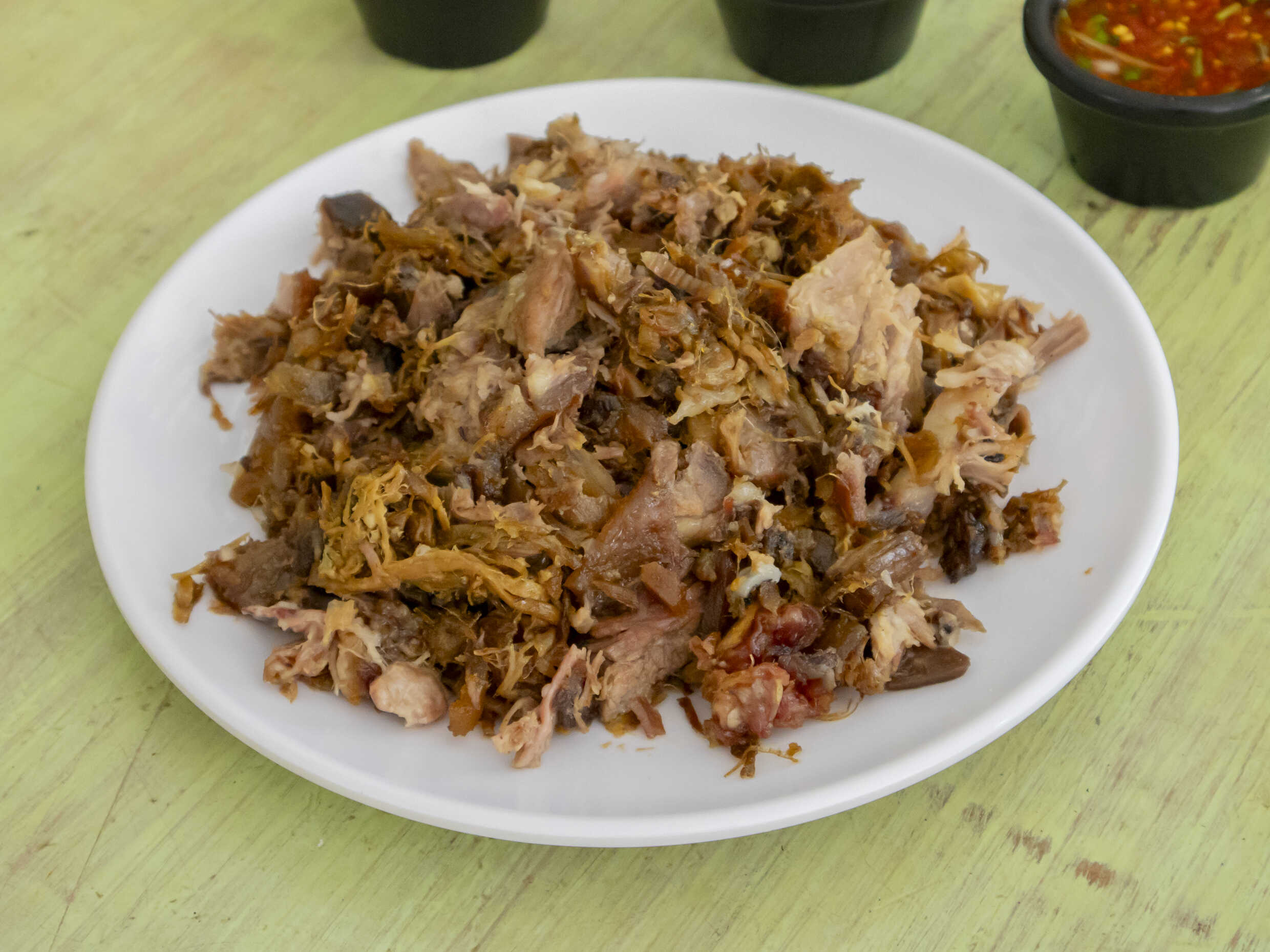 150 grs de Carnitas, porción de arroz, frijoles y tortillas hechas a mano