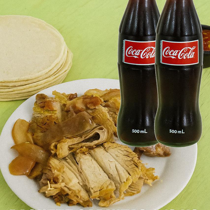 1/2 Kilo de Carnitas*1 + 1/2 Kilo de Tortillas*1 + Coca Vidrio 500ml*2