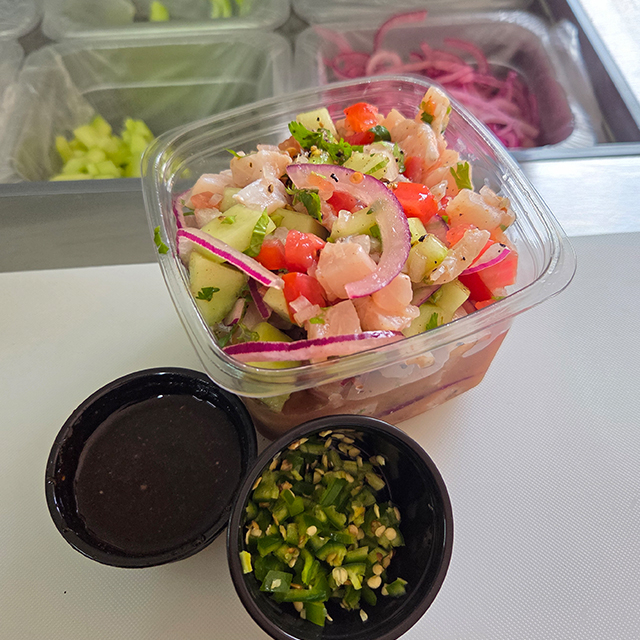 Cubos de atún fresco marinados en una mezcla de limón, pimienta, chile, pepino y cebolla morada. Un platillo refrescante, picosito y lleno de sabor, perfecto para abrir el apetito o disfrutar como plato fuerte. ¡Ideal para los amantes del marisco y lo enchilado! Bowl individual, acompañados de bolsa de tostadas 5 pzas.