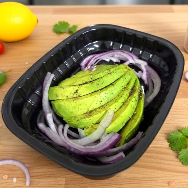 Aguacate fresco en su punto, cortado en porciones generosas, suave, cremoso y listo para acompañar cualquier antojo