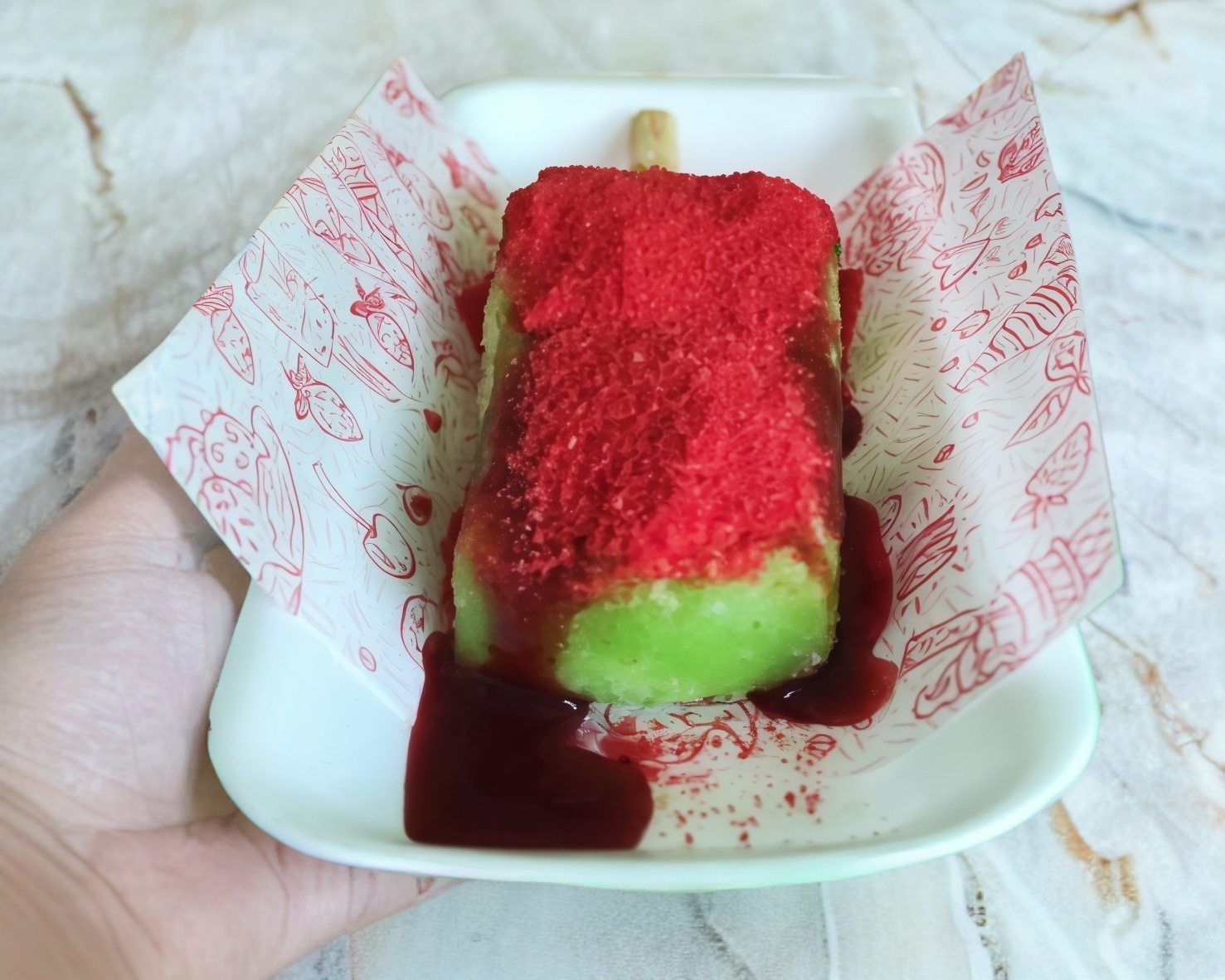 Paleta cubierta de chocolate con nuez, chispas de colores o coco.