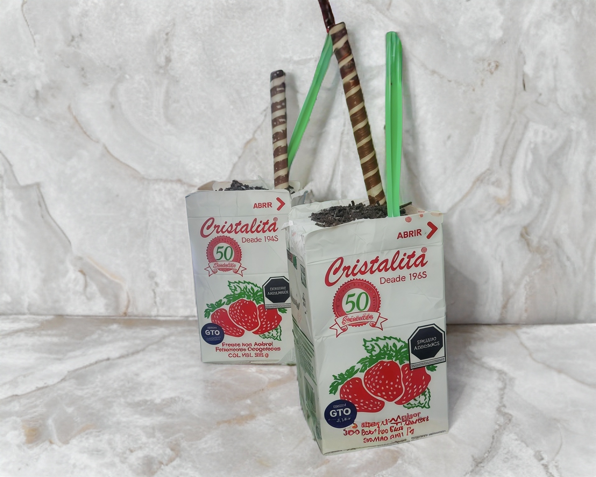 Fresas congeladas de la cristalita con porción de chantilly, chispas, chocolate y galleta.