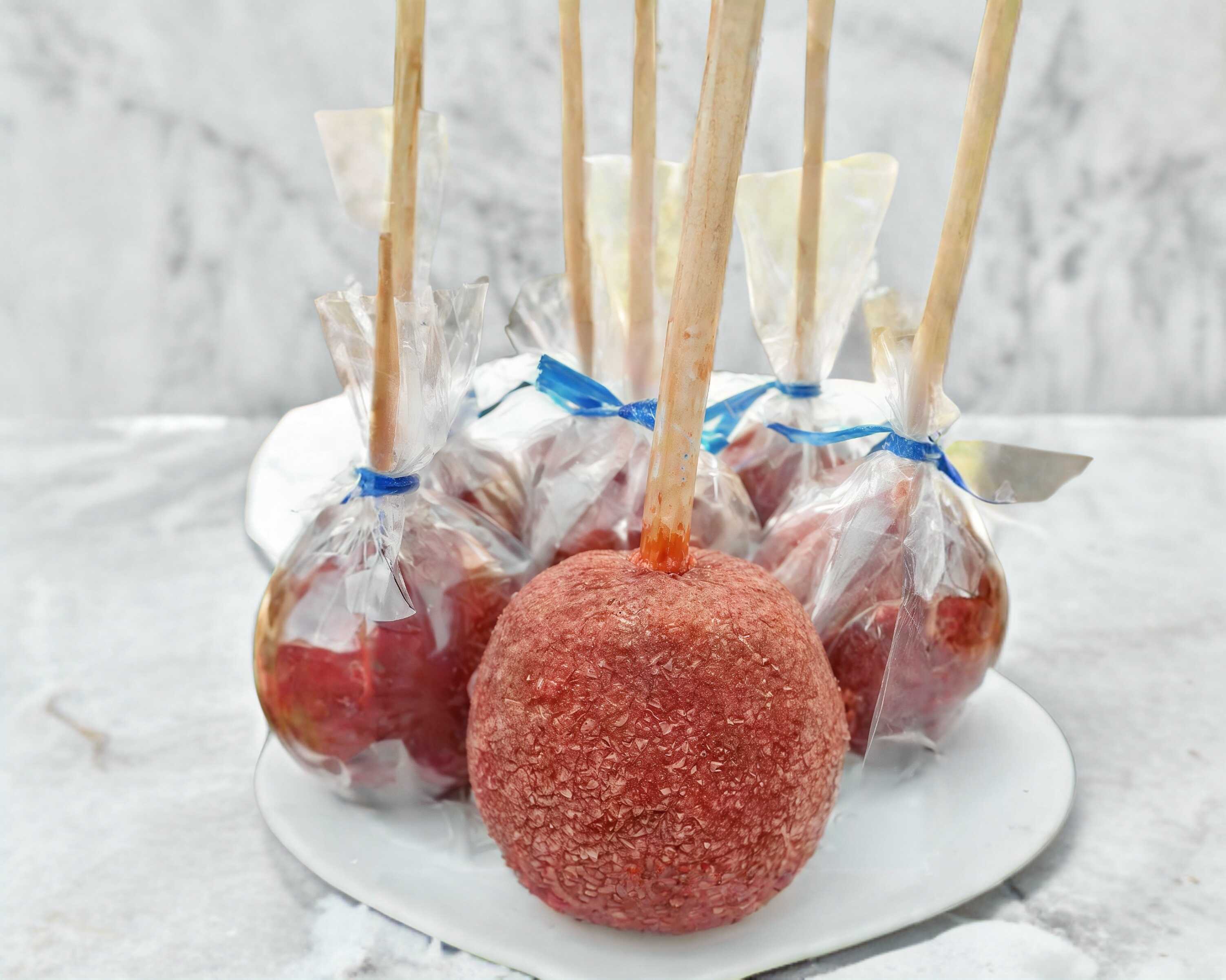 Manzana cubierta de pulpa de tamarindo y miguelito.