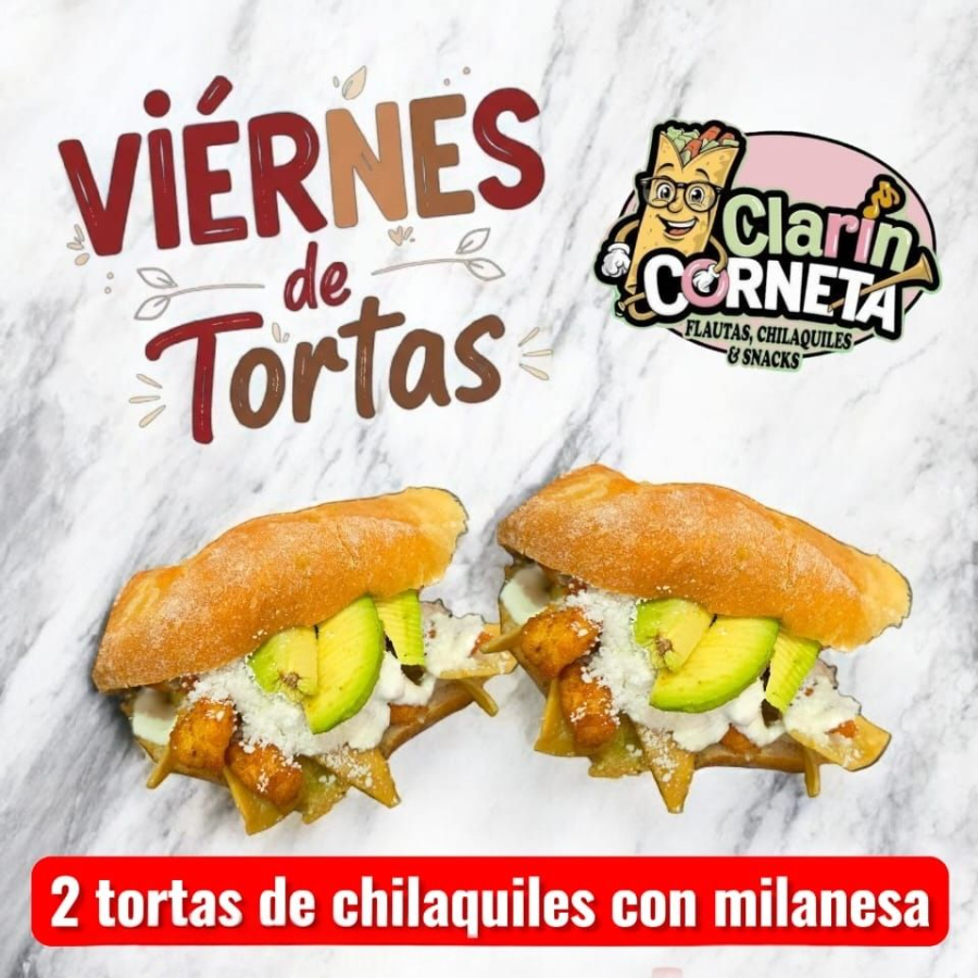Tortas de Chilaquiles Rojos con Milanesa de Pollo*2