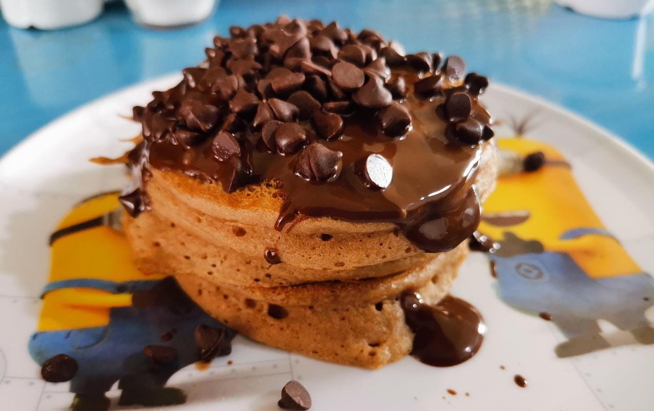 3 Piezas. De chocolate con chispas de chocolate, con mermelada de piña o lechera o nutella o cajeta o miel de abeja o miel maple.