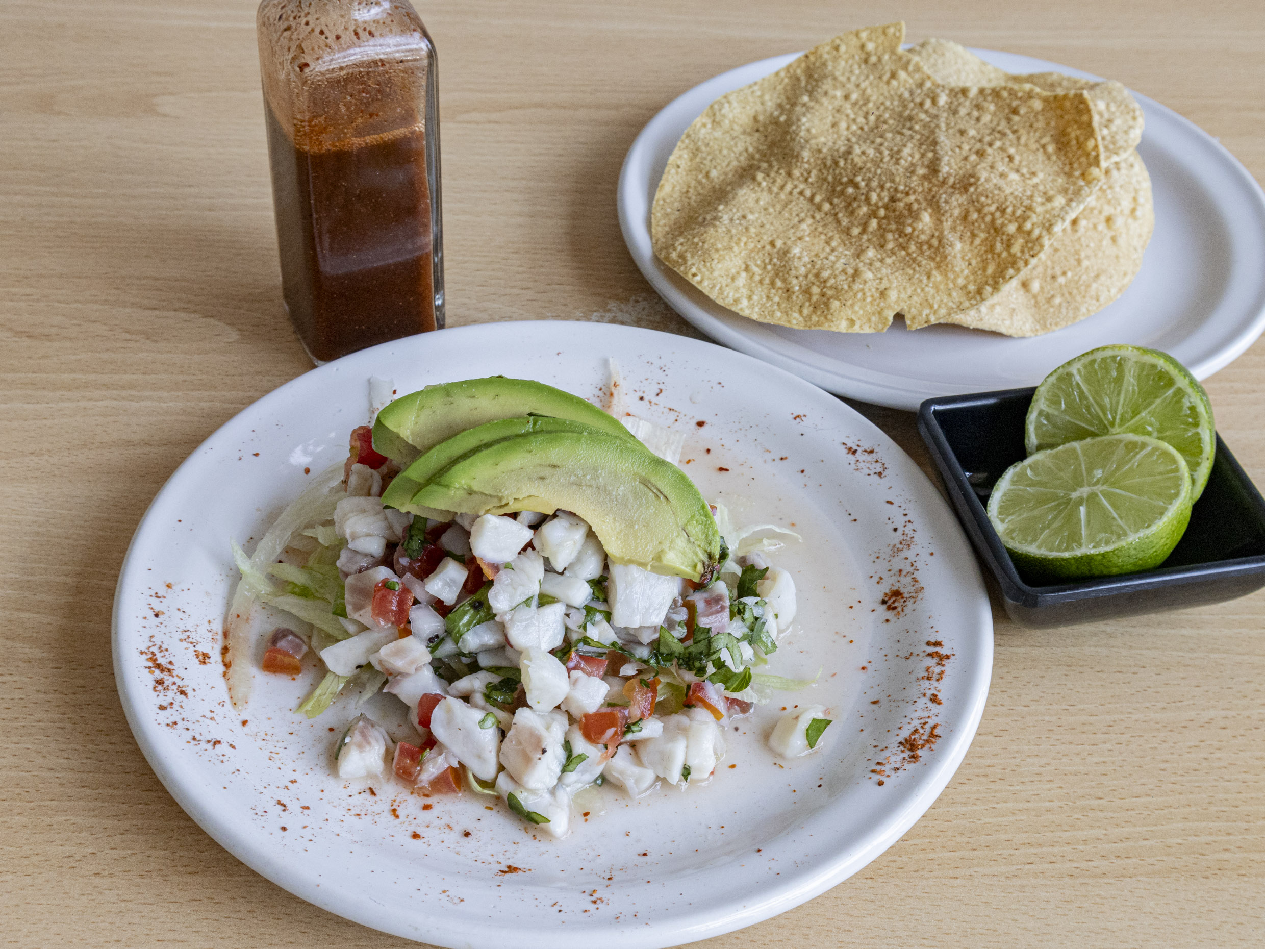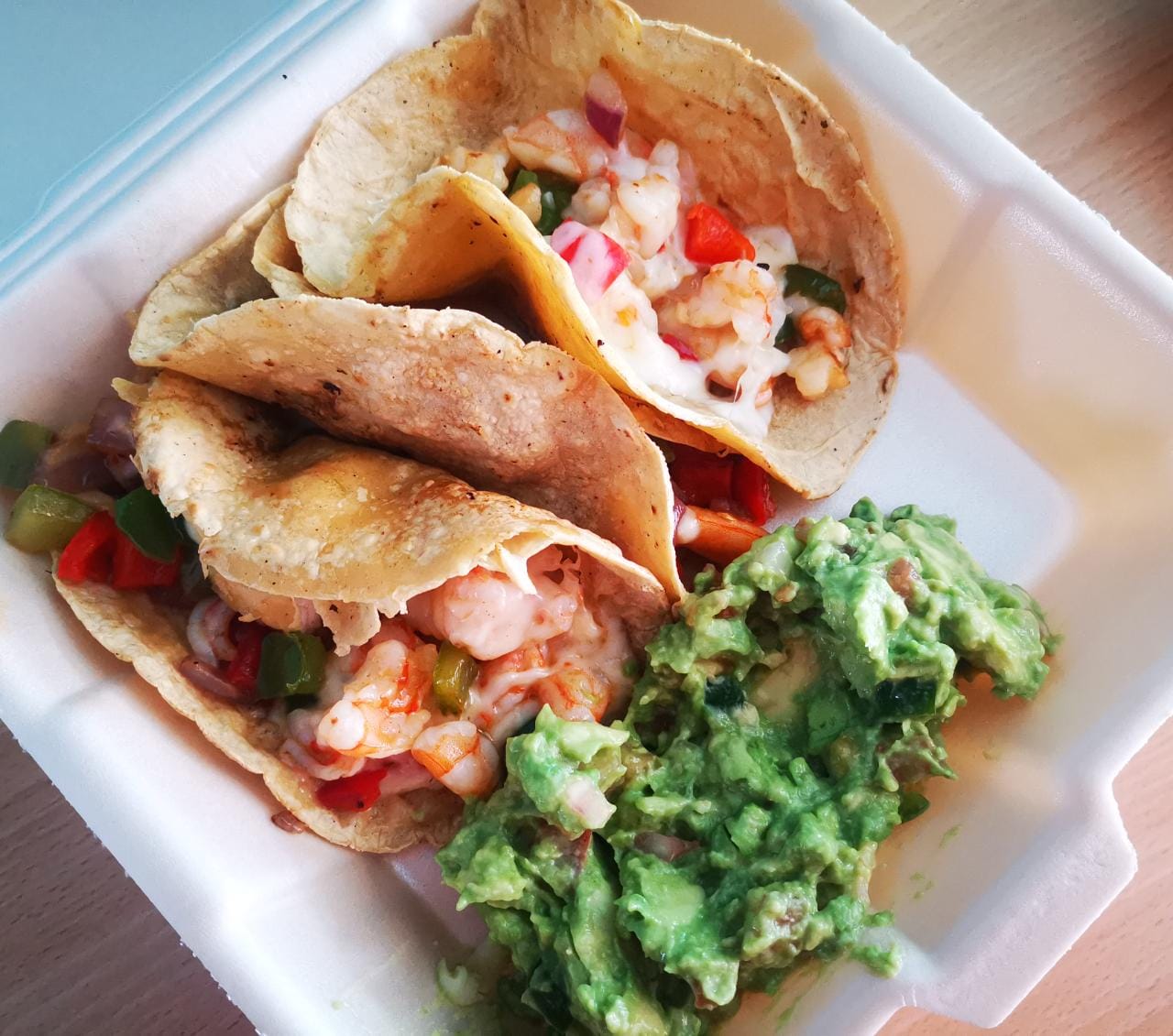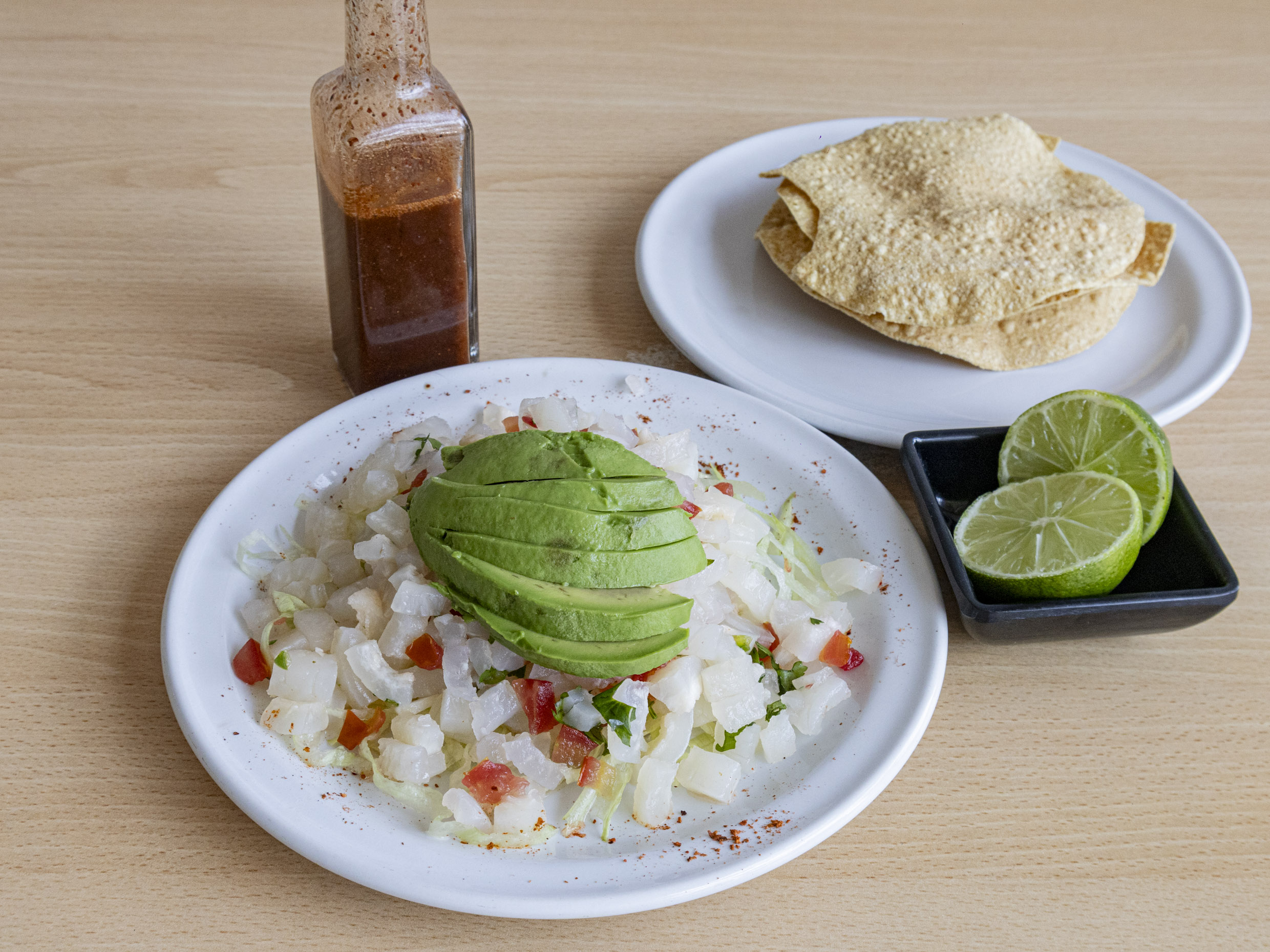 Camarones a la plancha, con tocino, queso asadero, bañados en aderezo de chipotle y aguacate. Con papas a la francesa o ensalada.
