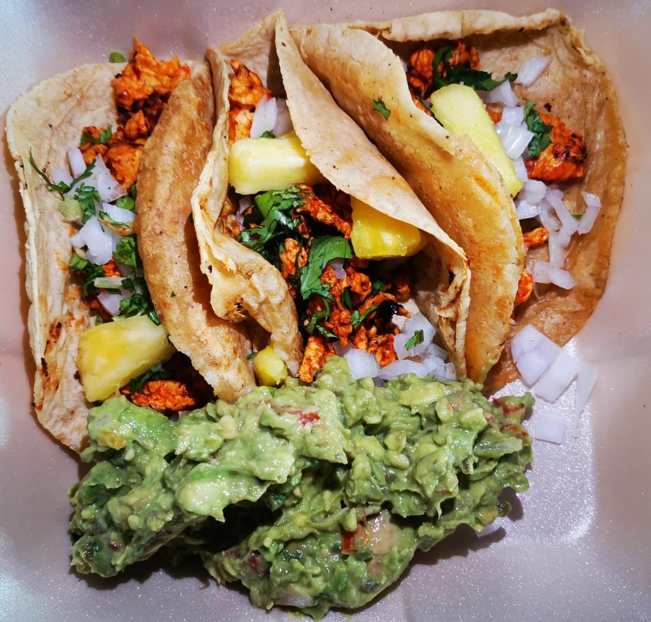 2 Piezas. 1 Ingrediente a escoger, con tortilla de harina o de maíz. a elegir: chorizo, jamón de pavo o pollo.