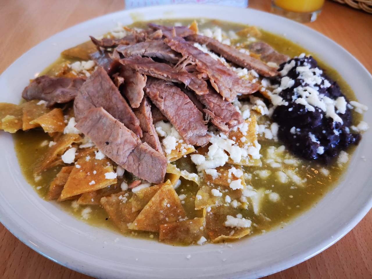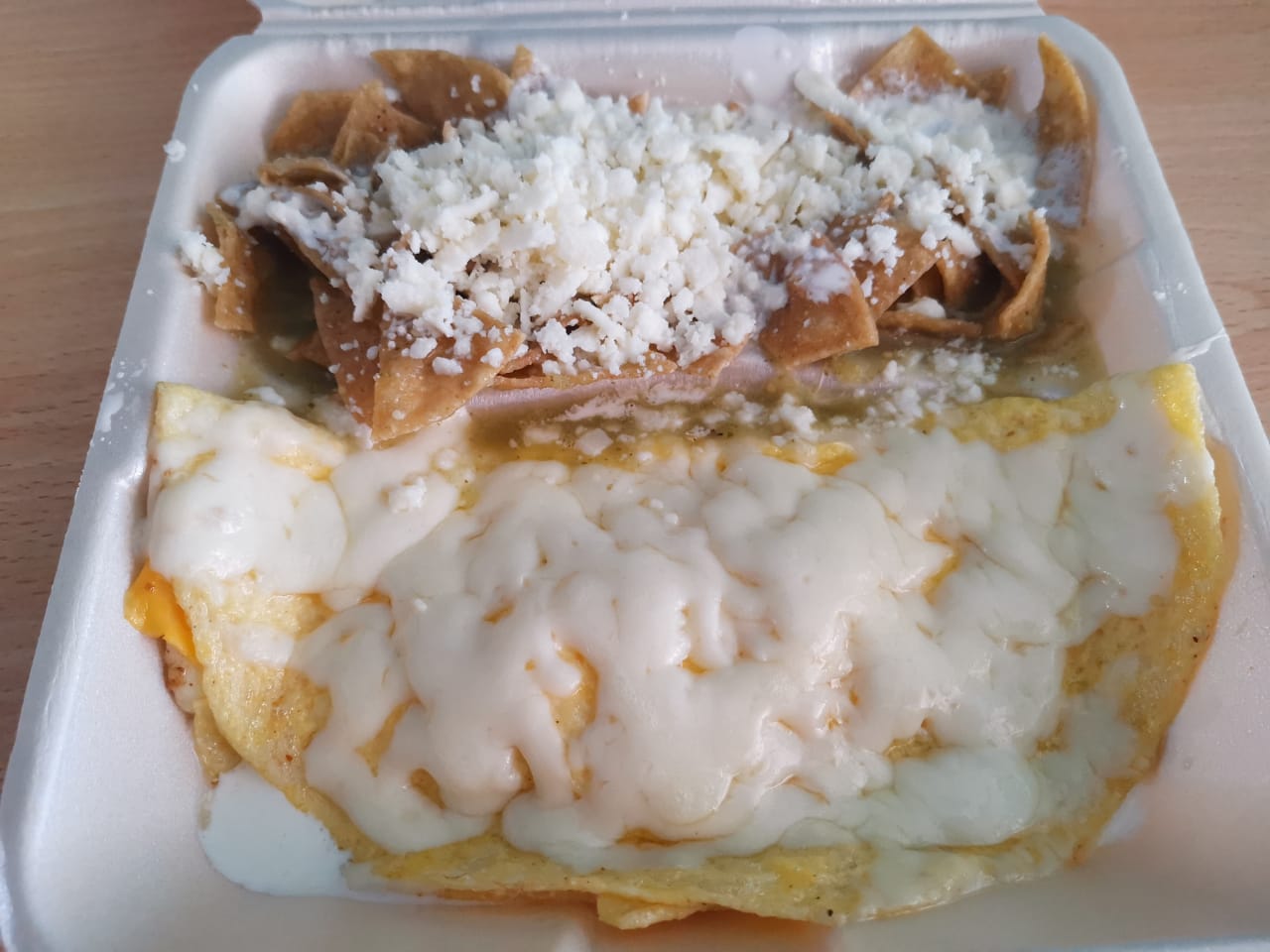 Chilaquiles para escoger verdes o rojos con queso y crema.