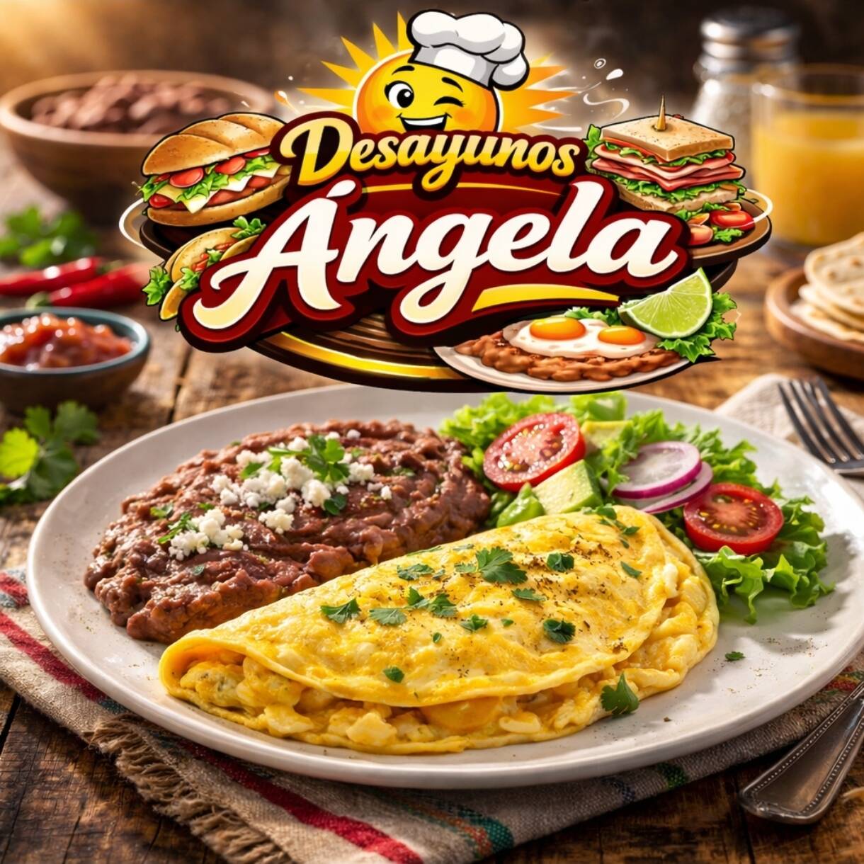 Omelette Ranchero -Bañado en Salsa Roja y Queso