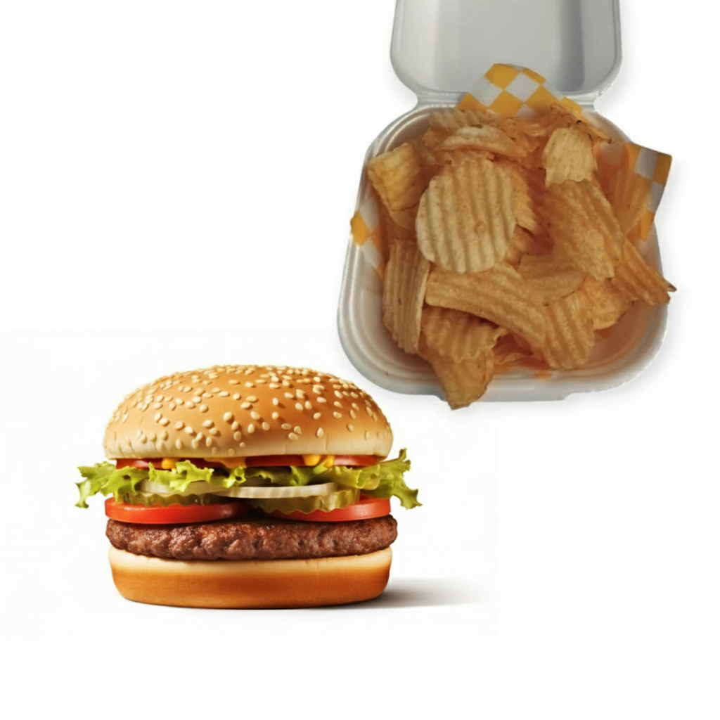 Papas Crujientes (Tipo Sabritas)*1 + Hamburguesa Sencilla*1