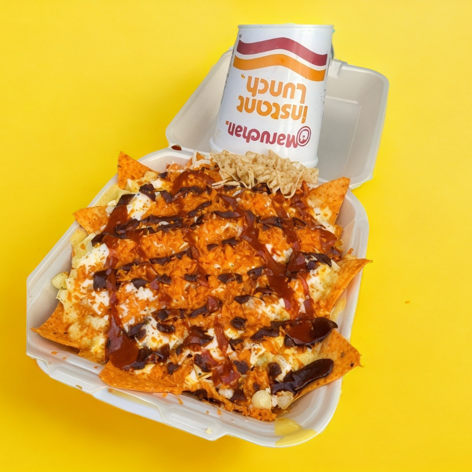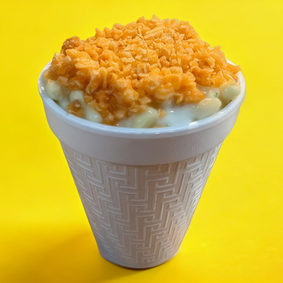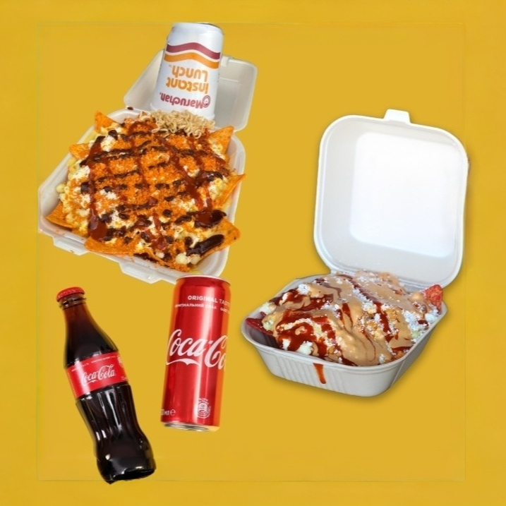 Maruchan, doritos, elote blanco o amarillo, crema o mayonesa, espolvoreado, queso amarillo y queso molido