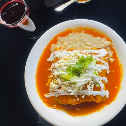 Enchiladas Mineras con Arrachera y Frijol