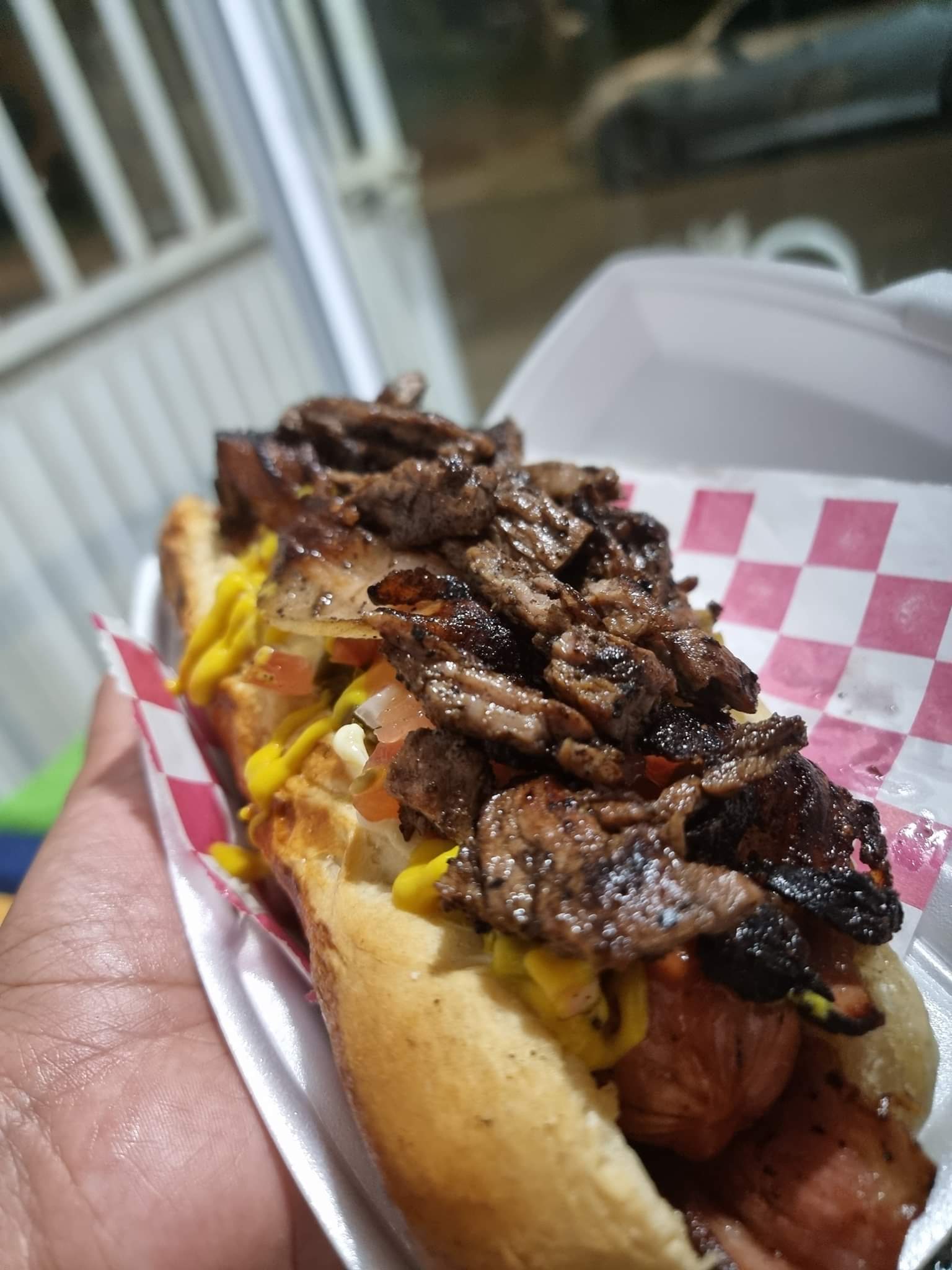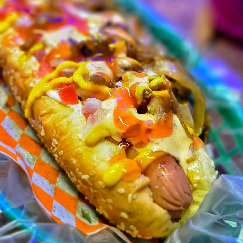 Hot dog clásico, queso gratinado con chorizo fresco.