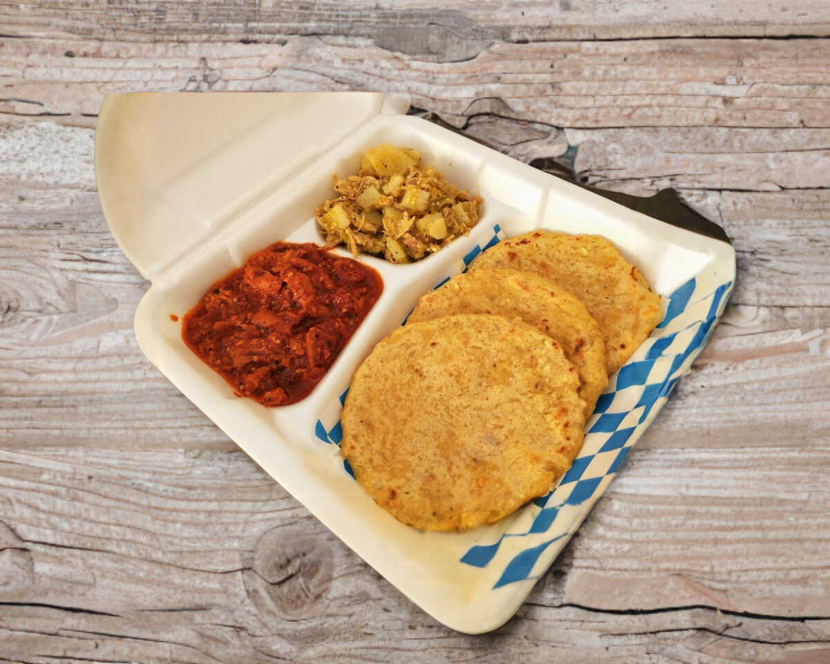 Masa Trozos de Nopal,Masa Tradicional,Masa Enchilada,rellenas de Frijoles Refritos , Queso Ranchero y lechuga