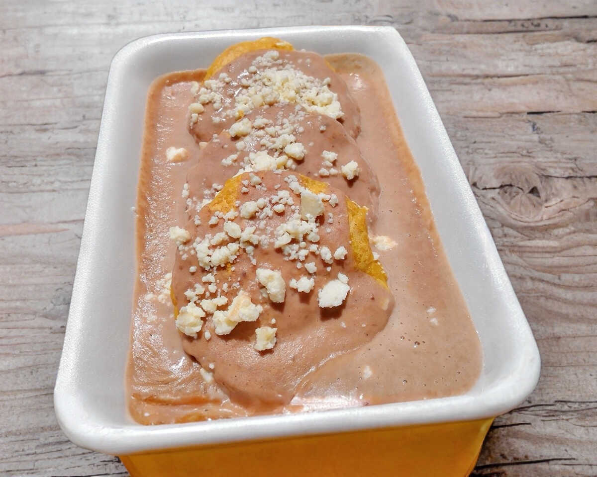 Rellena de Frijoles Refritos , Queso Ranchero y Lechuga