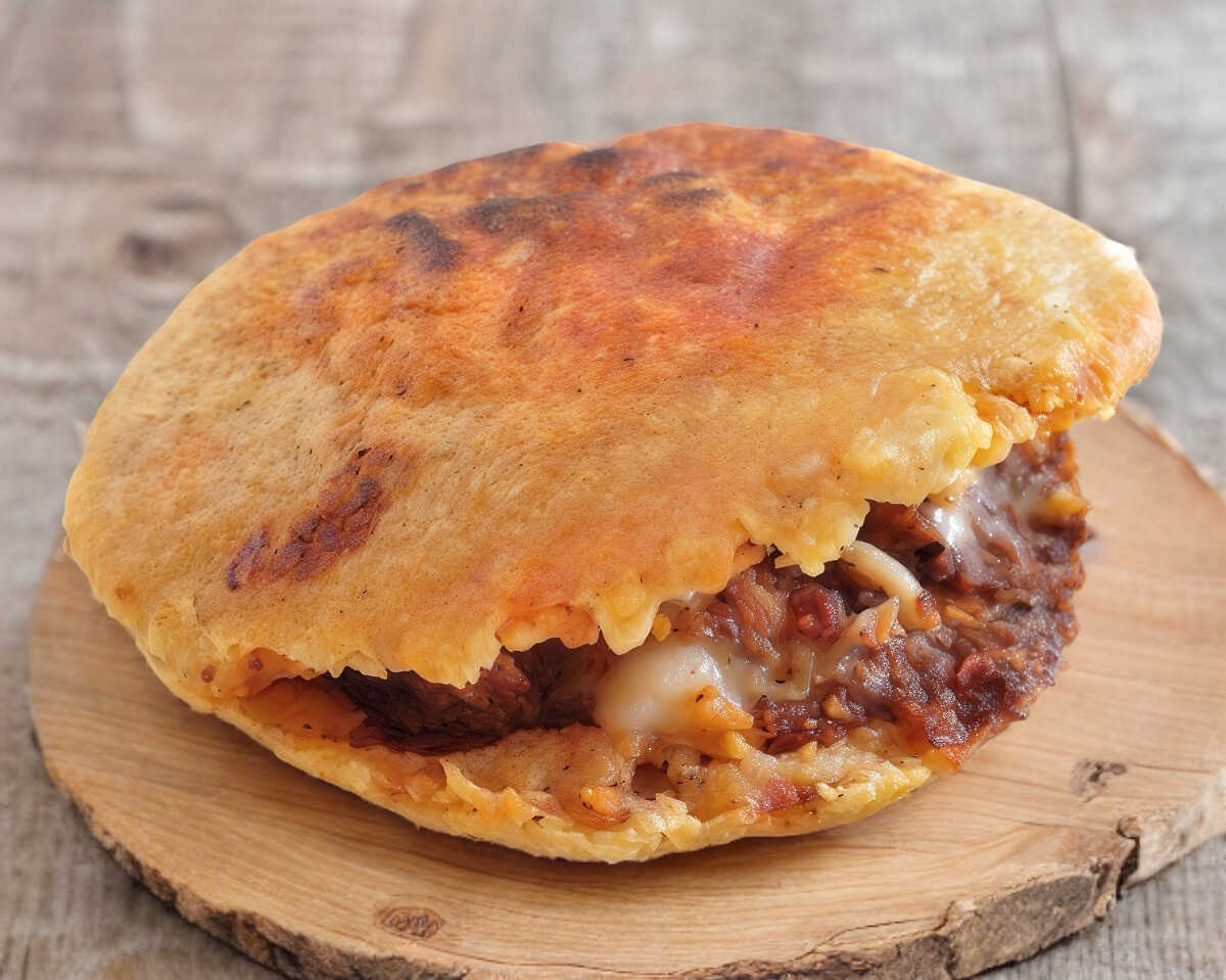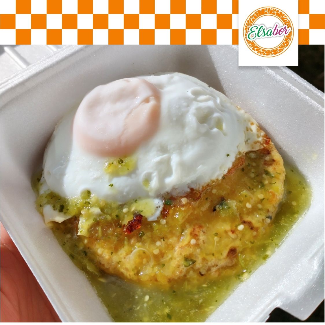 Rellena de Queso Asadero acompañada de un huevo estrellado y salsa