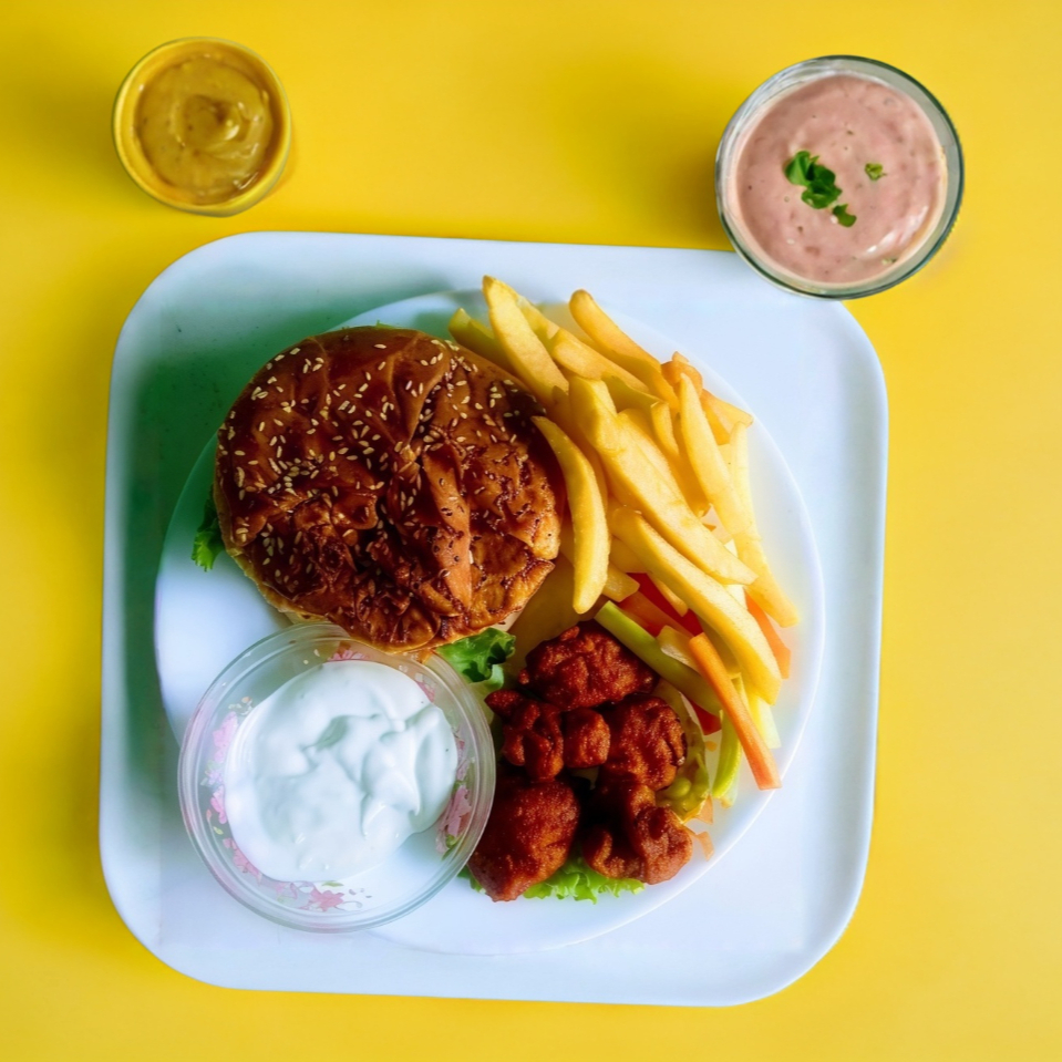Hamburguesa, papas, boneless