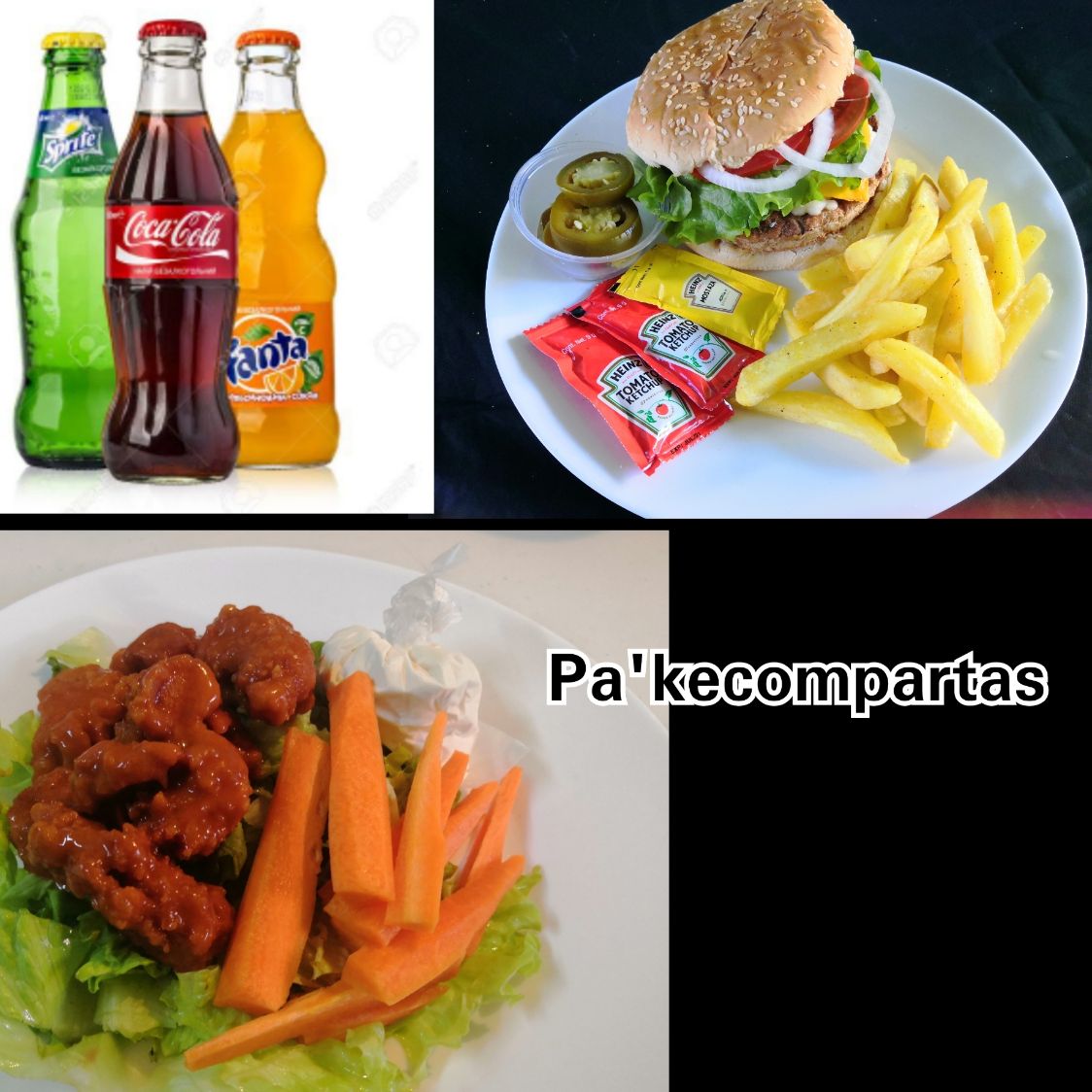 4 Hamburguesas, 2 órdenes de boneless y bebidas