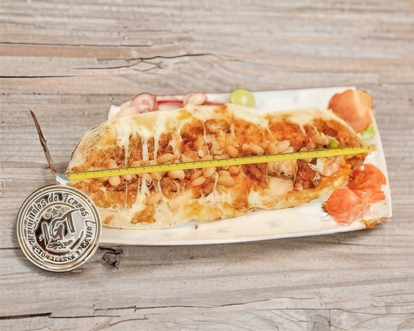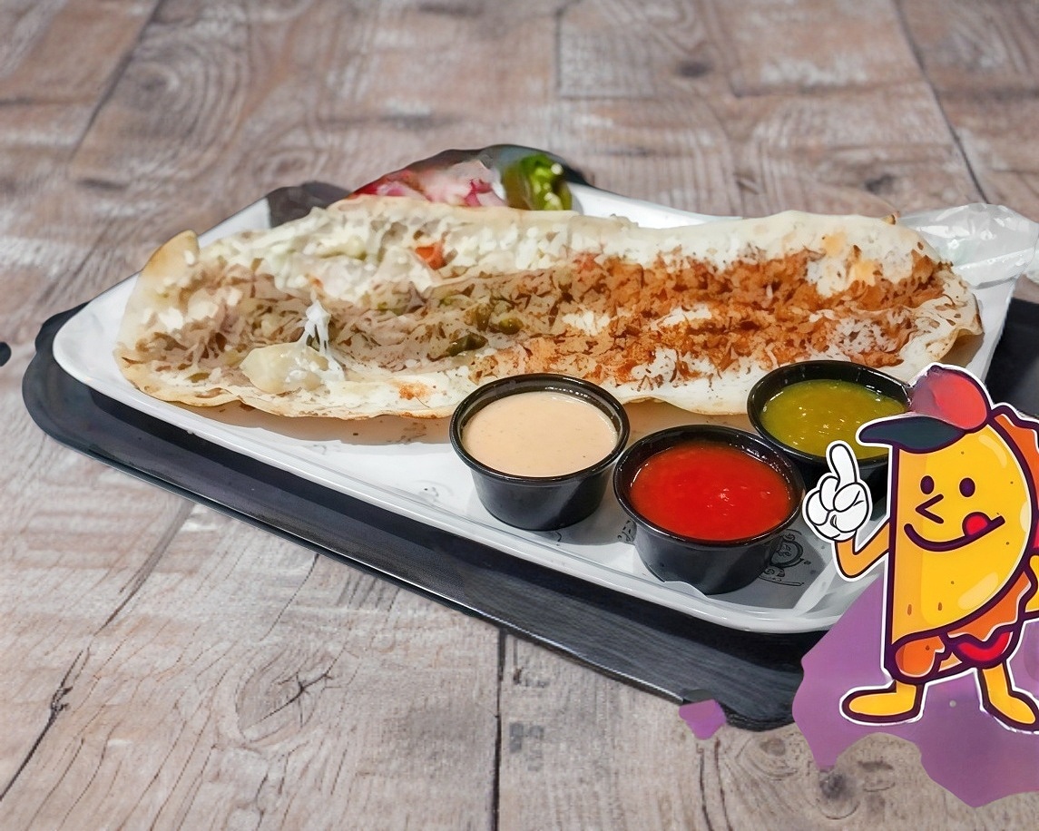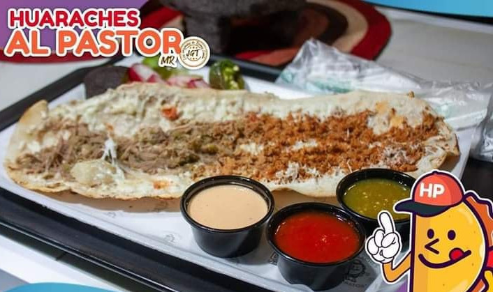 Huarache entero de bistec para una persona, combinación de cebolla, apio, perejil y pimiento morrón.