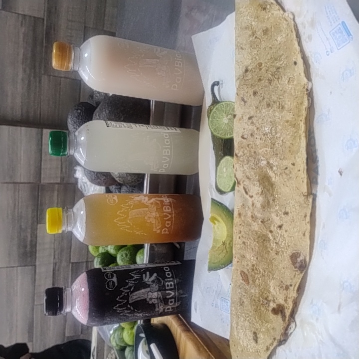 Huarache Entero de Pastor*1 (Tortilla de maíz, queso asadero y carne al pastor) + agua del dia 500ml*1 Fresa, horchata, coco, café, lima o limón (El sabor del agua depende de la disponibilidad, no es elegible) Plato personal.