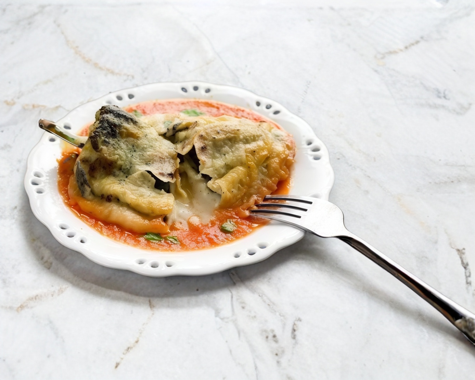 4 Piezas de pollo o res bañadas en crema y queso, acompañadas de ensalada y salsa.