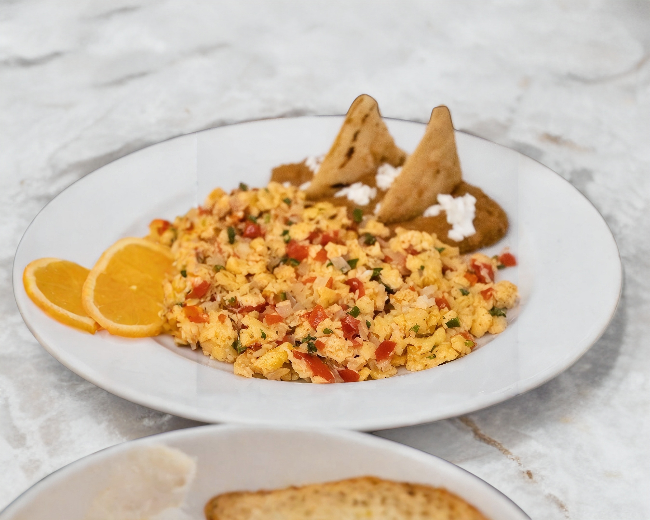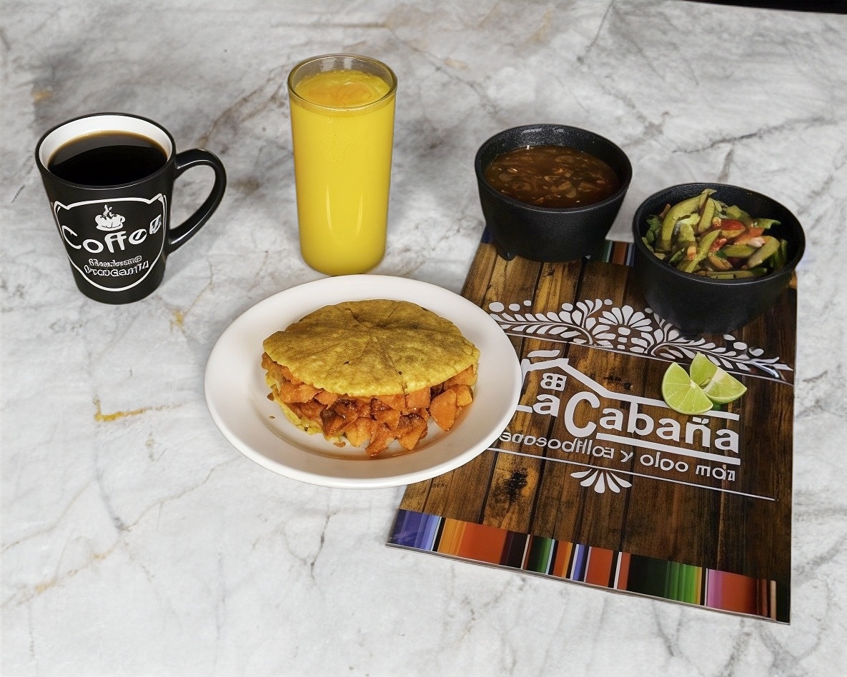 Acompañado con frijoles refritos, tortillas y salsas.
