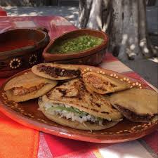 Gorditas de Cacahuate: Incluyen 2 guisados a elección de manera obligatoria. Se acompañan con salsa verde y salsa roja por aparte.